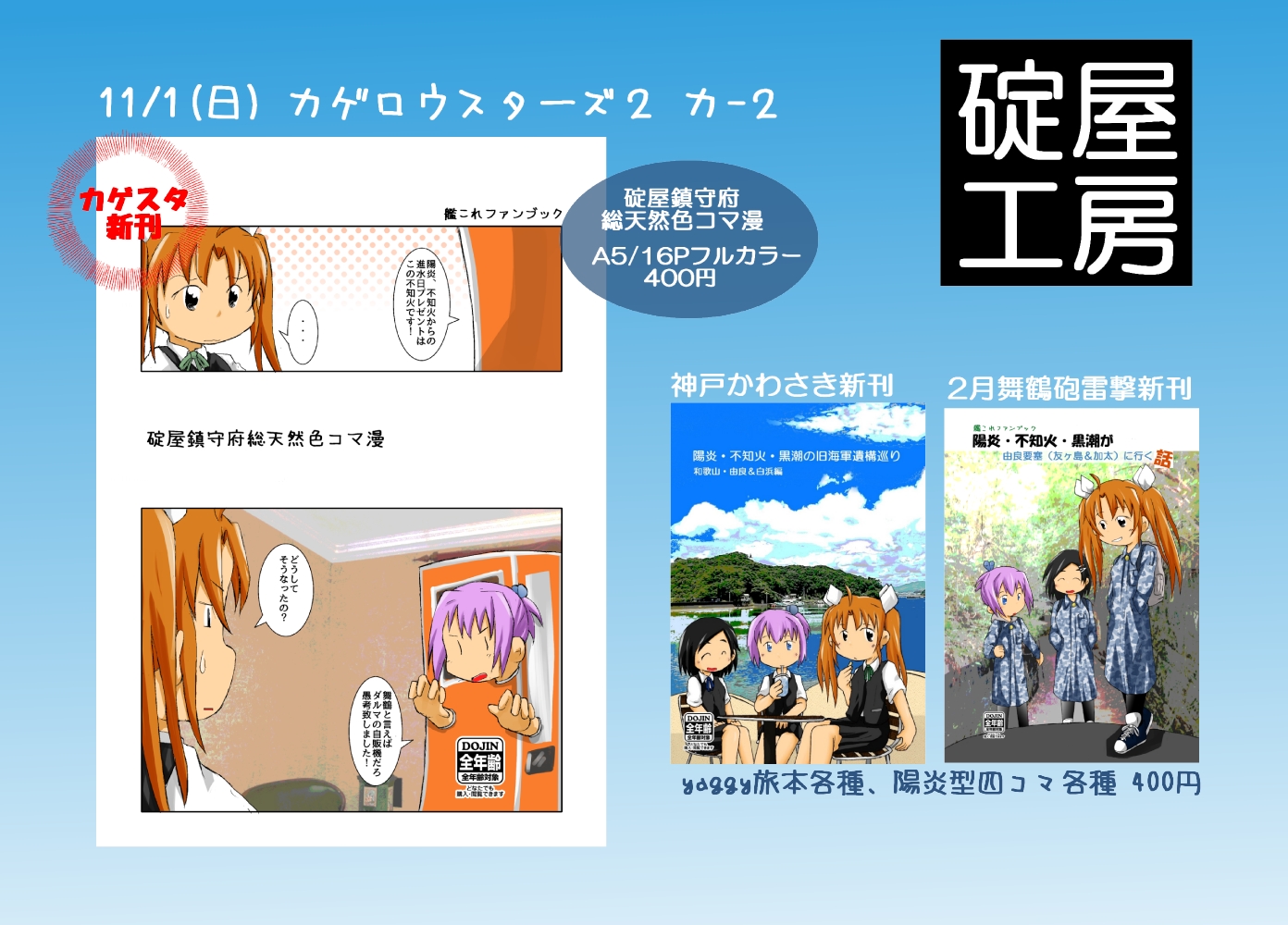 11月1日開催の「カゲロウスターズスターズ2(川崎市産業振興会)」、新刊を無事お届けする事が出来そうです(汗