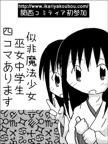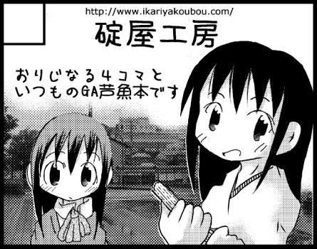 そんなこんなで明日の「関西コミティア40」参加させて頂きます。配置スペースはI-02「碇屋工房」にて、メインの配布物は去年冬に出したHPに公開中の四コマをまとめたやつなんですが、其れでは余りにも申し訳ないので、申し訳程度の無料本を持って行きます。すんげぇやっつけなので期待はしないで下さい(汗