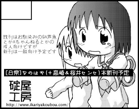 雨が心配な所ですが(住んでる場所が住んでる場所なので)、何事も無ければ、明日の「よんこま小町8かいめ」参加いたします。新刊は「日常」の半コピペ本と成りますが、既刊も持って行きます故、何卒宜しくお願いいたします。