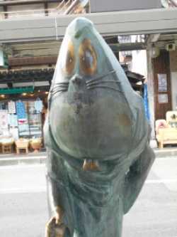 そんなこんなで境港到着。みなとさかい交流館で妖怪ガイドブックを購入(100円)し、いざ水木しげるロードへ。道の両側の歩道にはこれらの主要キャラの像が数多と並んでいます。