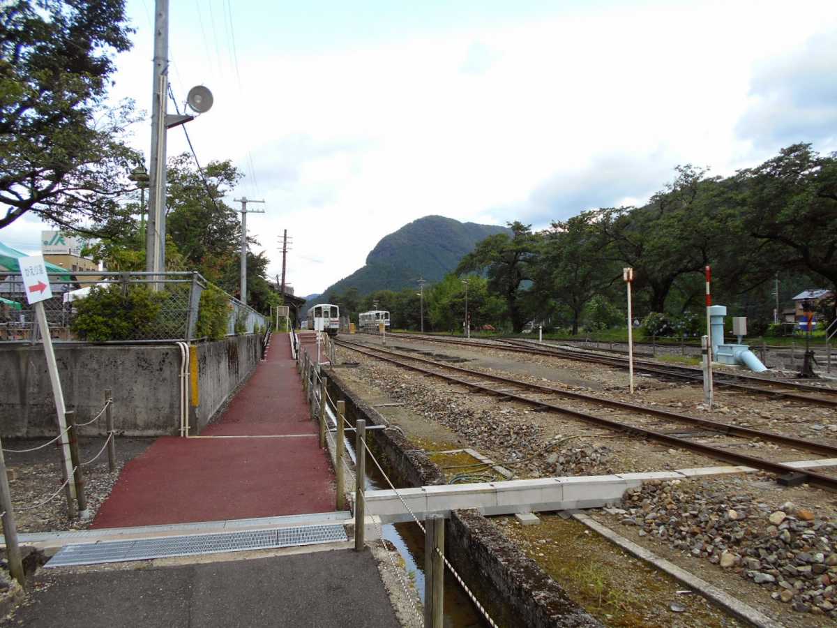 長閑な山間の風景を一両編成の気動車にコトコト揺られ、若桜駅へ到着。