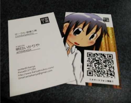 名刺作ってみました。 同人初めて10ウン年(つか20年近いな)、初めて同人用の名刺なるものを作ってみました。ええ、100枚480円と安かったので。 表裏はこんな感じ、絵は新刊表紙からの流用で(汗)。QRコード貼りたかったんですよー。 つか、仕事柄、名刺には殆ど縁がないのでなんか不思議な感覚ですわー。一番最後に名刺持ったのが多分15年前の3月位までたった筈なんで(ただし、肩書に「秘書」とか書かれてたけどなー。