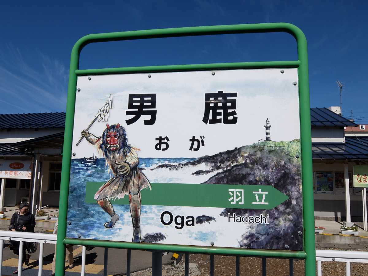 秋田駅からはキハ40型で男鹿線乗り潰しへ。しかし、出発時間になっても車両動かず。なんか不具合らしいが大丈夫なんかな? と思っていたが何とか6分遅れの7:55出発。追分駅を過ぎてから男鹿線へと入っていくが、結構山間を走る感じ。もっとも海側のイメージが有ったんだが。
