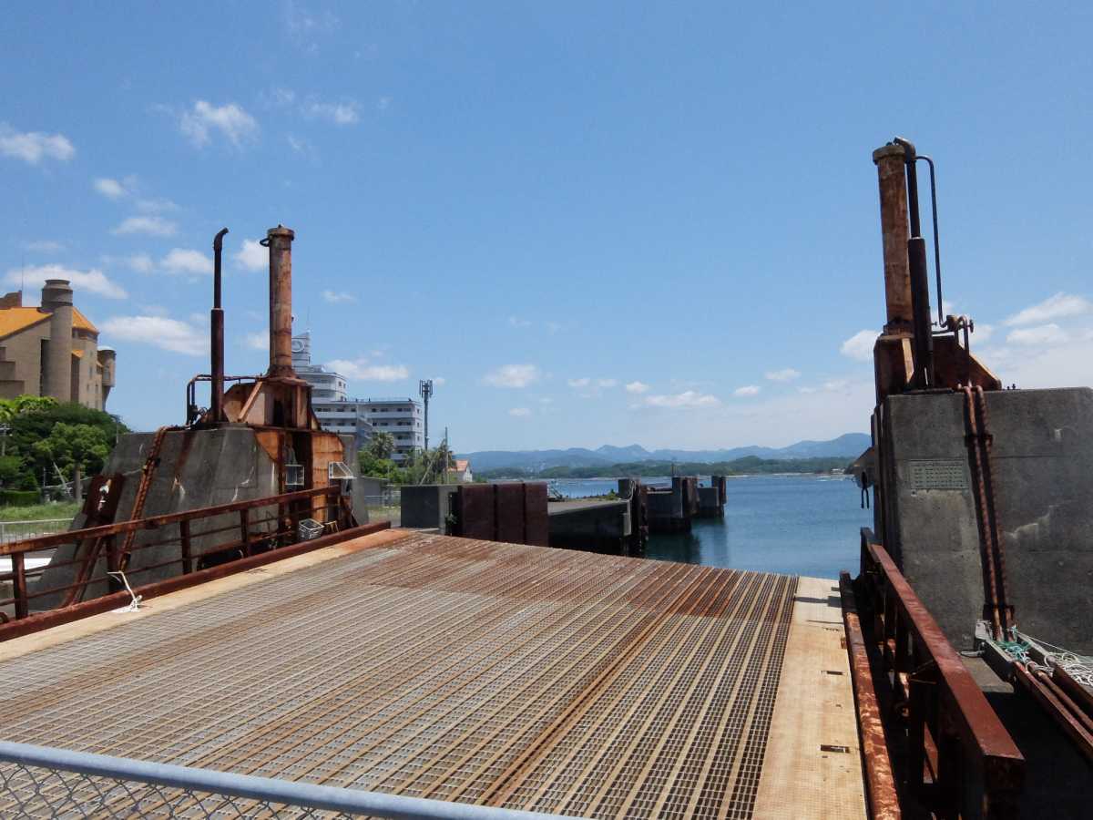 さて、この白浜桟橋でぱっと目につくのは、この「綱不知桟橋」と言う小さな桟橋で、渡船なら判るが、とてもフェリーが着けるようなスペースでは無い。車で走ると気づかないのだが、車を降りてこの綱不知から「ホテル川久」を望むと、その手前に錆び付いた着岸設備が見えるのだ。