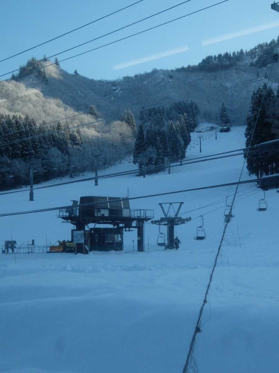 この越後中里駅付近からは湯沢中里スノーリゾートの休憩所として利用されている国鉄の客車が連なっているのを見る事が出来ます(スハ43系がメインらしい)。これだけ長編成で維持されているのも珍しいですよね(汗