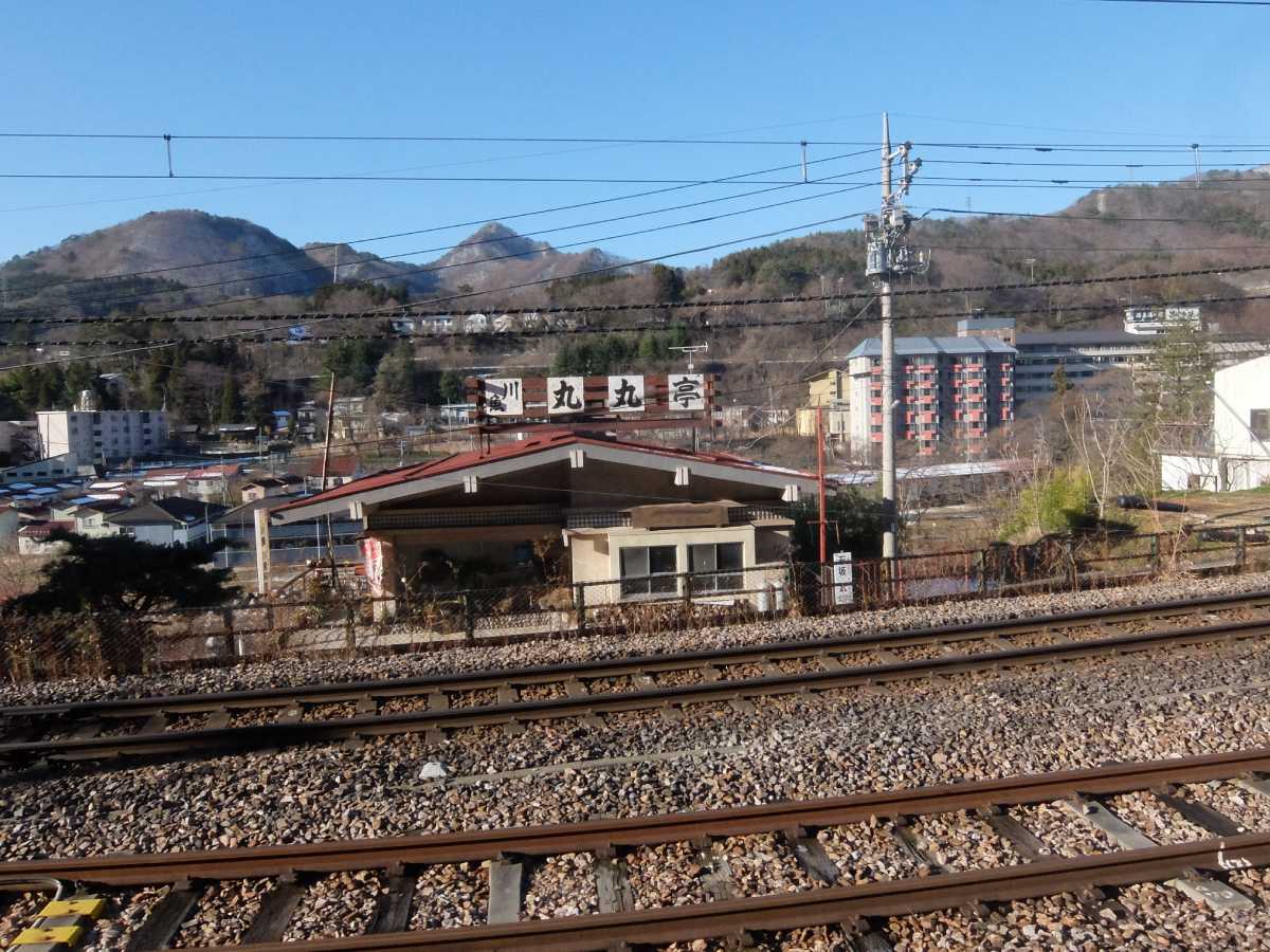 越後湯沢で一寸長めの停車を経て峠越えに…と出たはいいのですが、越後中里駅の手前で雪の為、一時停車。まぁ、この雪なら止む得んよなぁ。然程、時間を置かずに出発して頂けたのは有難かったかったです
