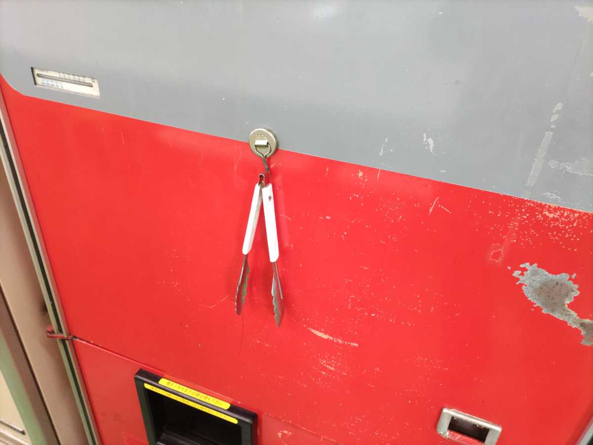 尚、オレンジハットさん。トーストサンド自販機に専用のトングが付いている優しい心遣い。結構アツアツなので有難い