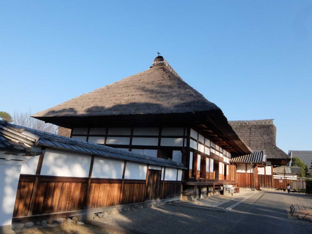 巨大な茅葺屋根の方丈が鎮座していて庫裡や書院と一かたまりになっています