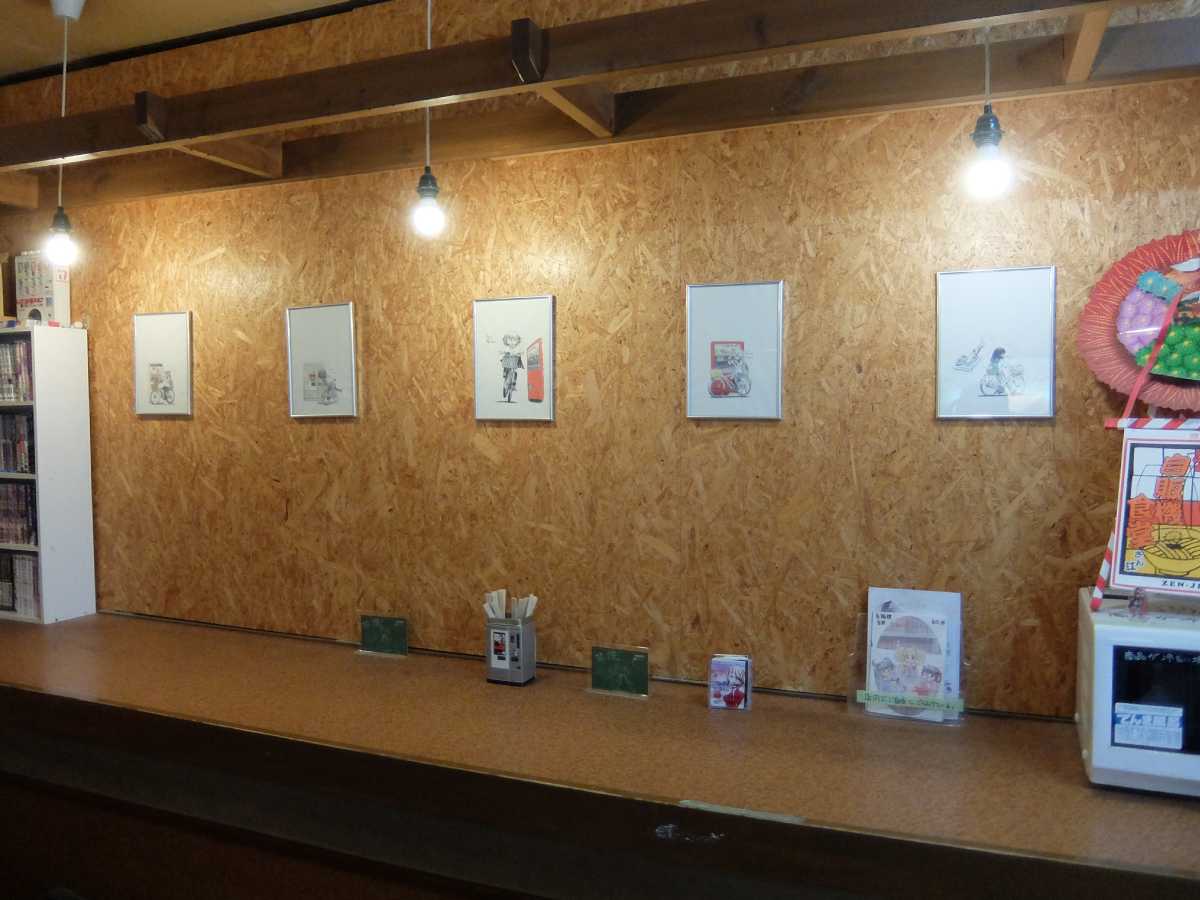 店内のテイストは割とコッチよりで、にゃん太屋敷308さん(@nyantayasiki308)の描かれたイラストが展示されていたり、