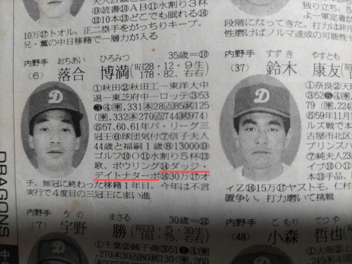 我が家に残る一番古い日刊スポーツの選手名鑑(1988年)の落合氏の愛車欄にもしっかり記載されている紛う事無き愛車です