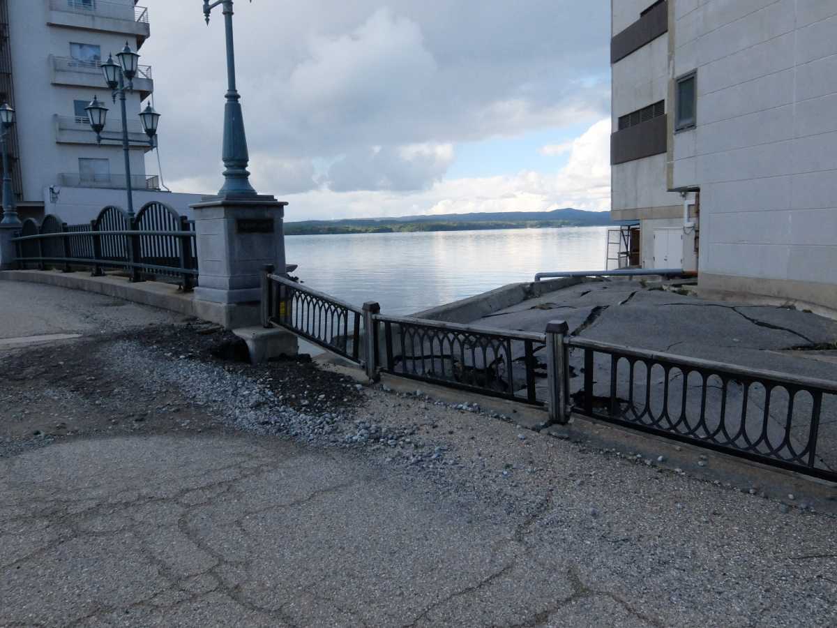 一方で自身の爪痕も大きく、高層の旅館が地盤ごと沈下している所もありました