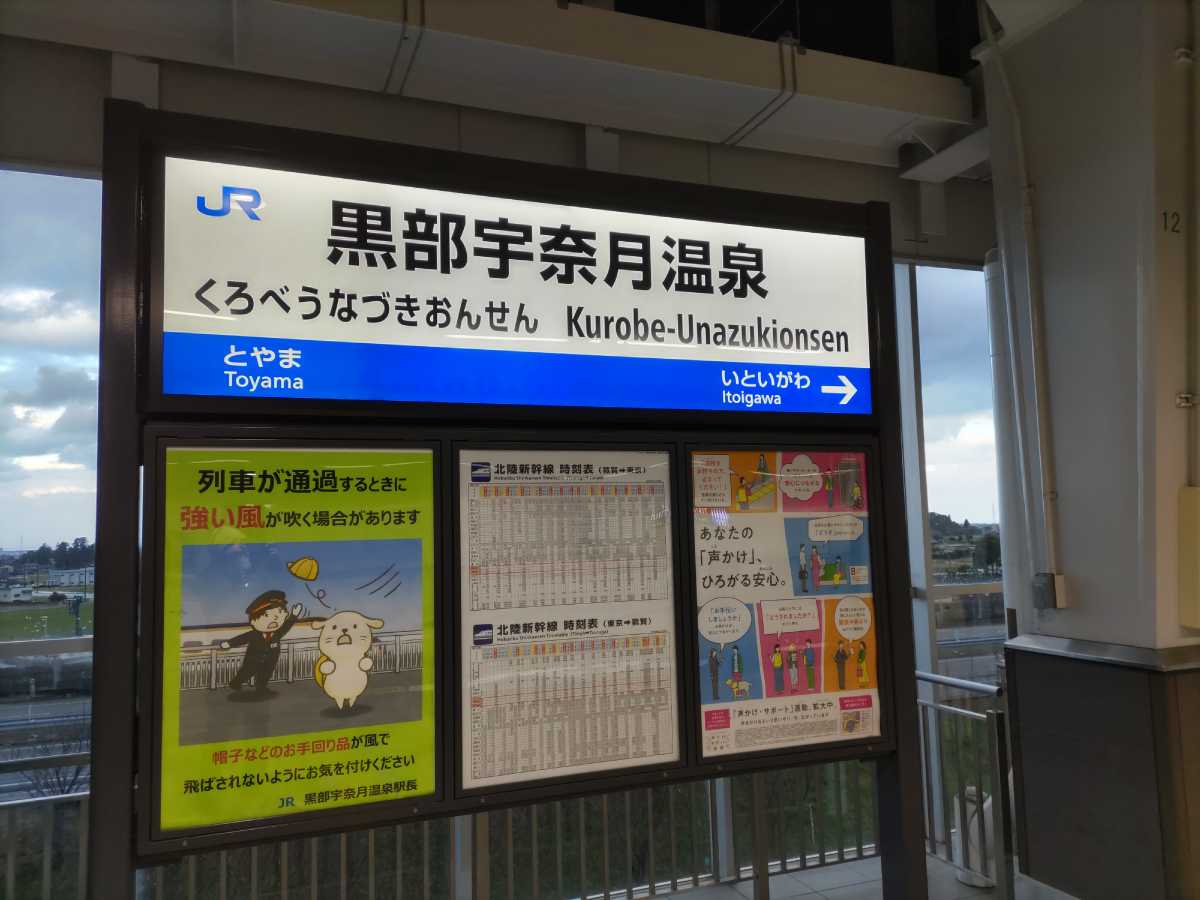 新黒部は新しいのでホームは広いのですが、ブラタモリでタモリさん言ってた通り、従来の駅のホーム狭いな(汗