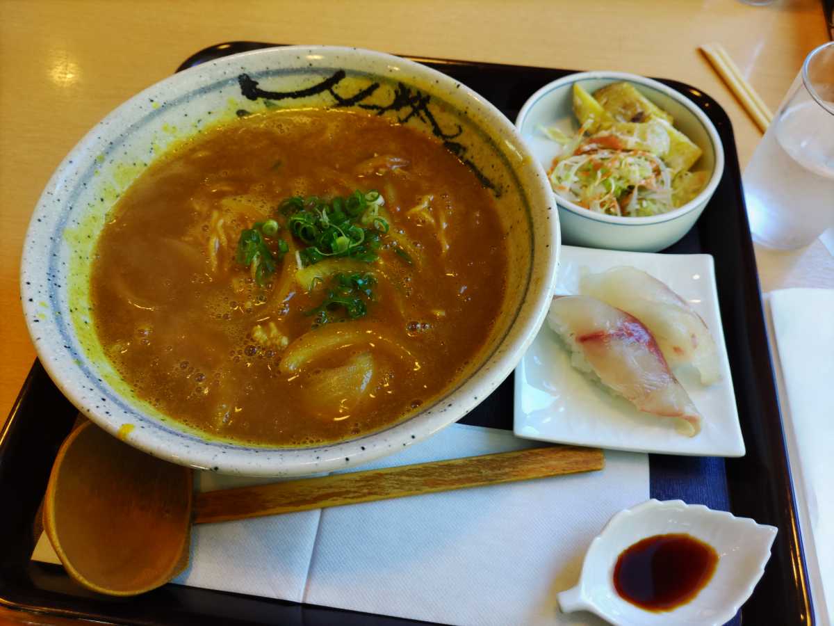その後、大泊にある「ほくしょう」さんでお昼ご飯。刺身定食狙いで行ったのですが、この日は休止。セットにお寿司が付くんでカレーラーメンのセットを頼んだんですが…まず、カレーラーメンが美味い