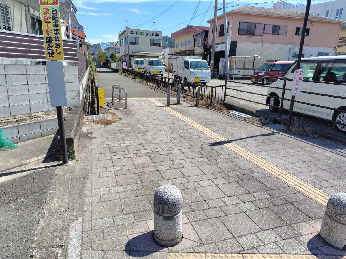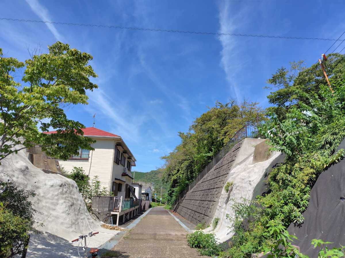 周辺は宅地用に整備が進んでいて、はっきりと廃線跡のサイクリングロードと判るのは板金屋さんのあるこの辺りから