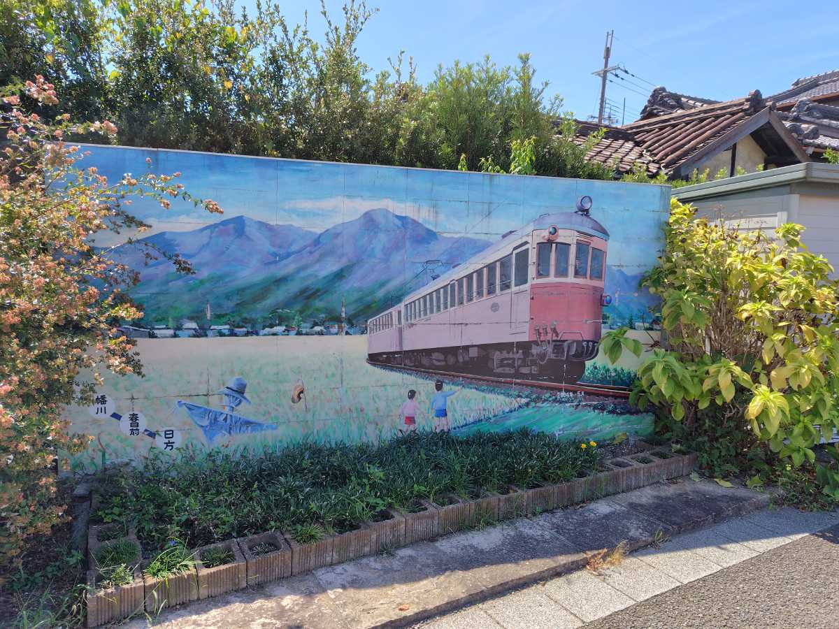 暫く走ると5枚窓が特徴の嘗てのモハ24形と思しき壁画が(道中壁画が結構あります)