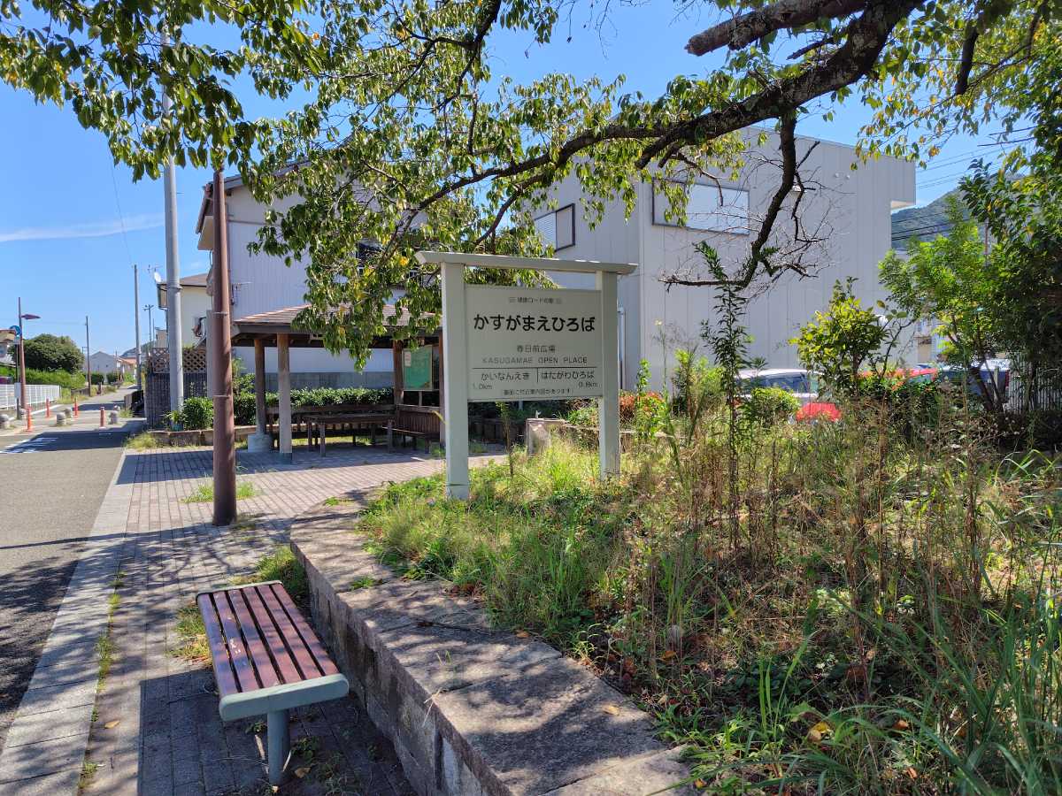 此処は春日前駅跡、各駅の後はそれぞれ小さな広場として整備されています