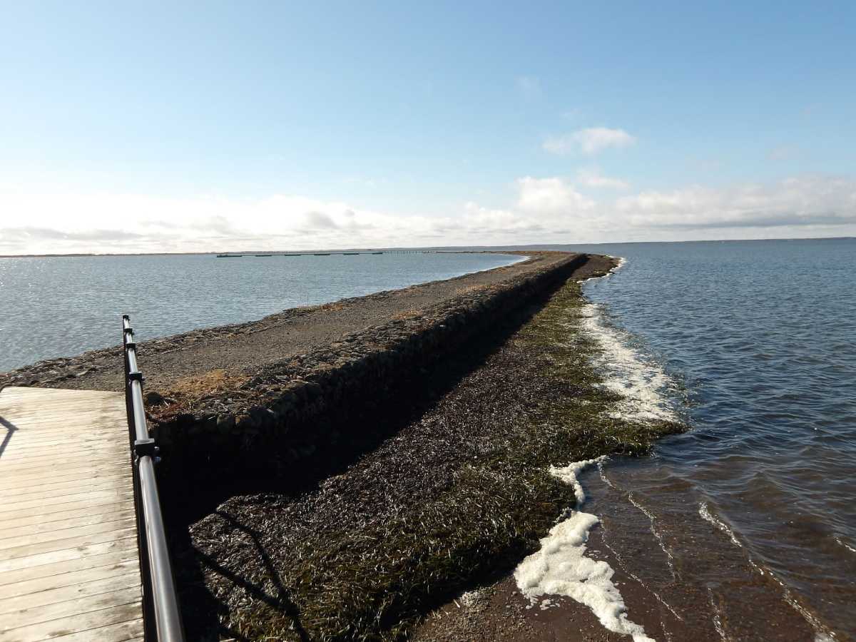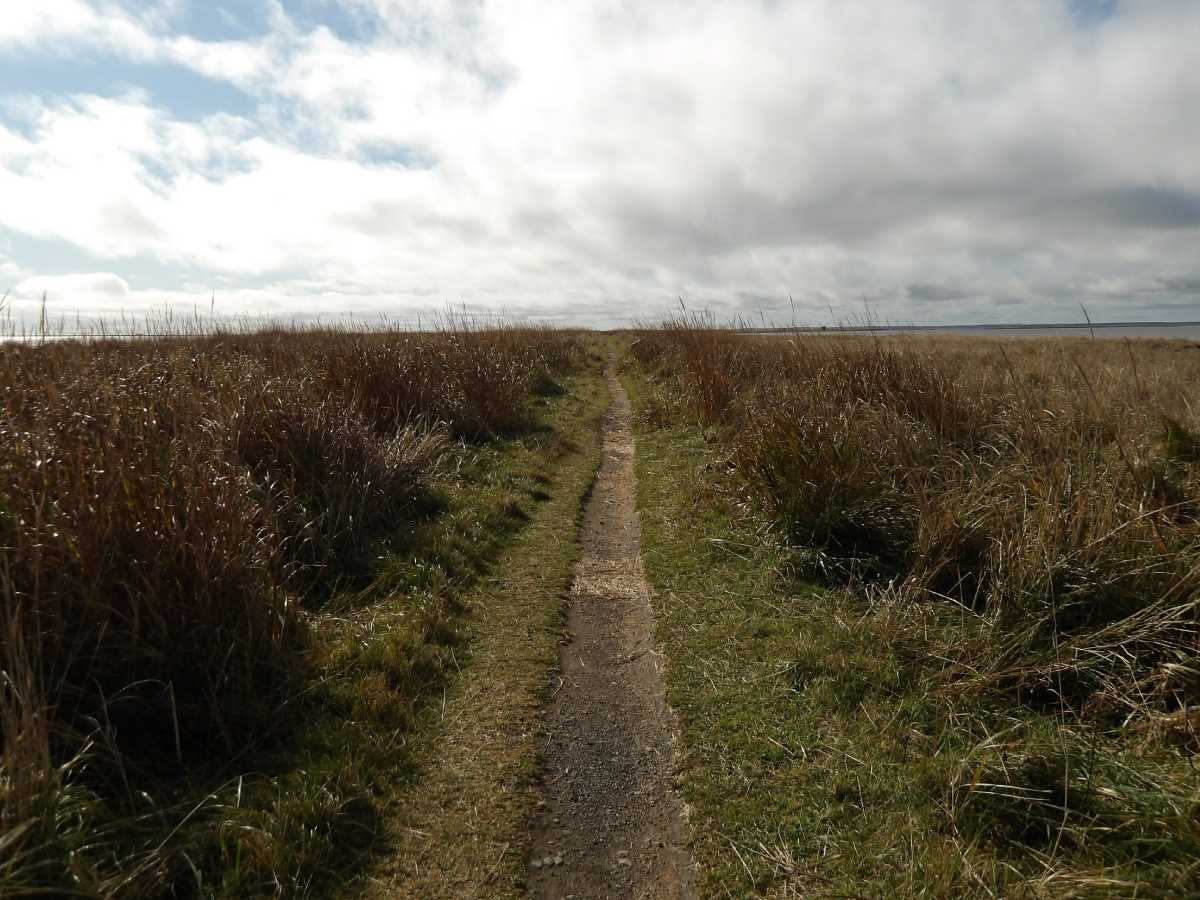前日の雨で一部ぬかるんでいましたが許容内。海の中の草原を歩いてゆくと
