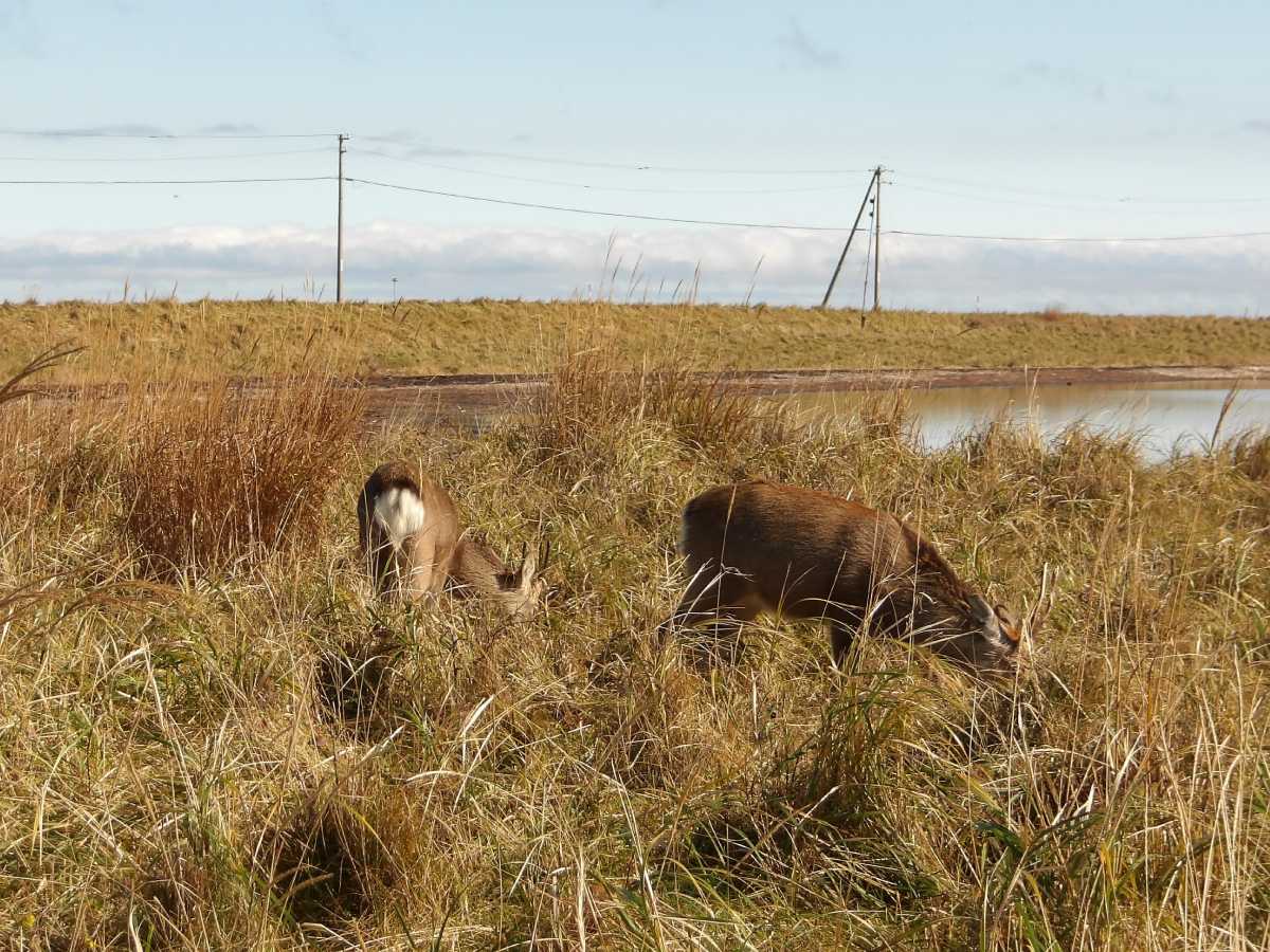 ネイチャーセンターの近くまで行くとエゾシカが道草食ってました…人間恐れないのね、君たち