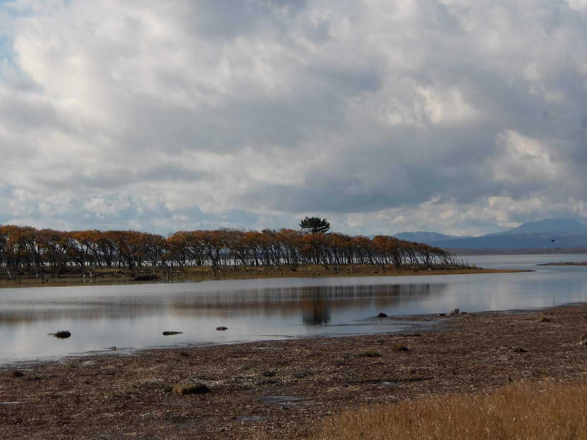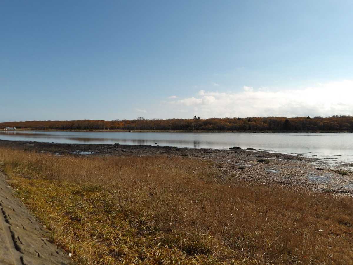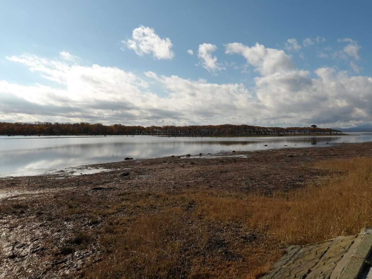 こちらは中に入るルートが無いので対岸からですが、コレが嘗ての「トドワラ」の姿かも、とも思わせる、立ち枯れたナラの木が林立していました(続きます
