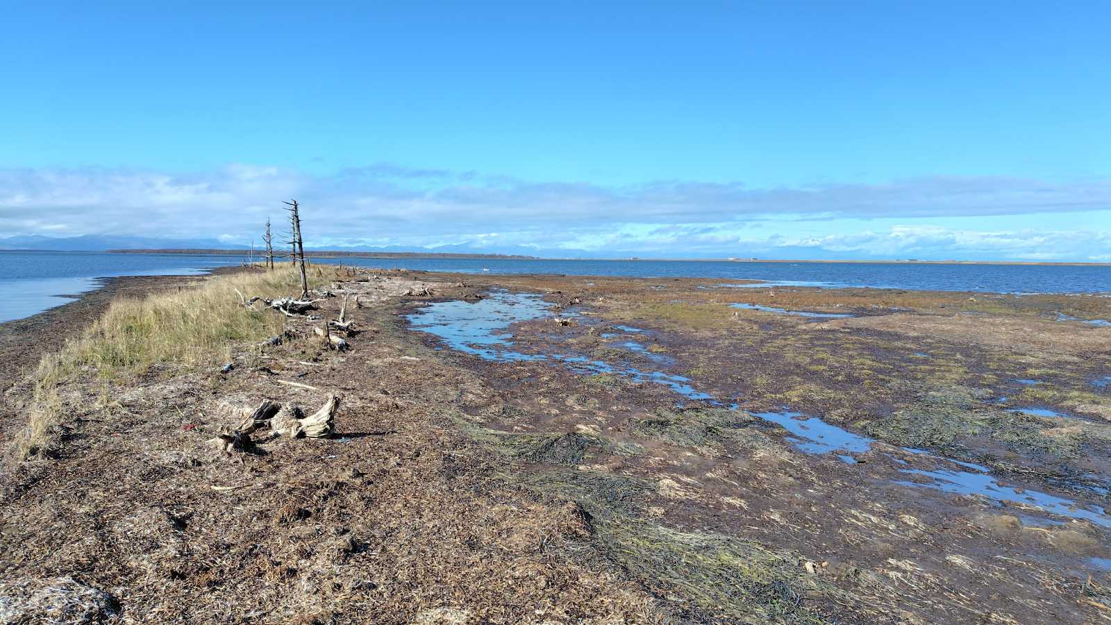 枯れたトド松の湿地へ。立ち枯れたトド松が数本に倒木や株だけになった木々が点々と湿地に点在する風景は正に「最果て」と言う雰囲気を醸し出してくれます