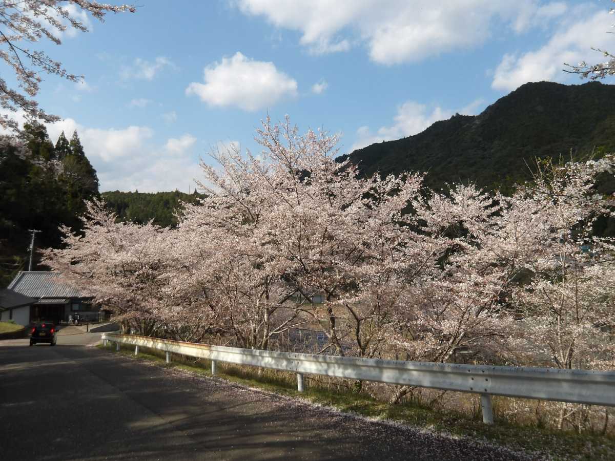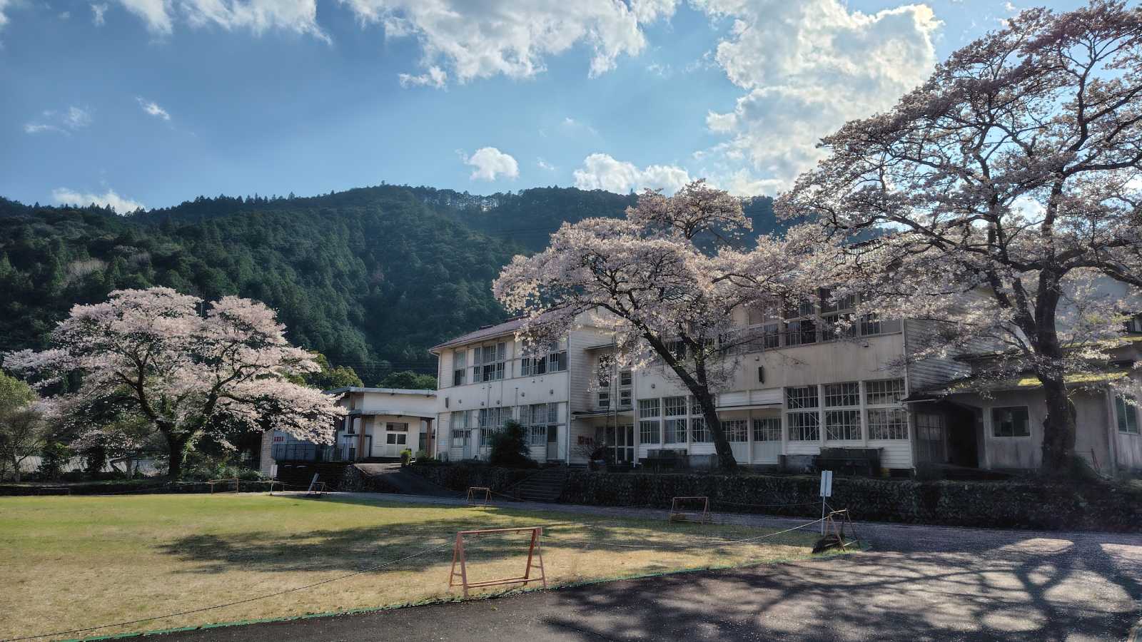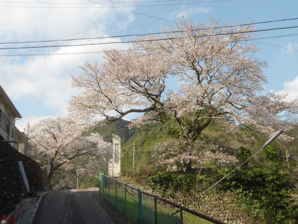 四村川沿いの桜の次は、旧皆地小学校跡。現在は「皆地いきものふれあいの里」として利用されています。尚、下に有るスペースは前の染色工房の駐車場なので、車は校庭まで上げてしまいましょう(端に止めればOK)