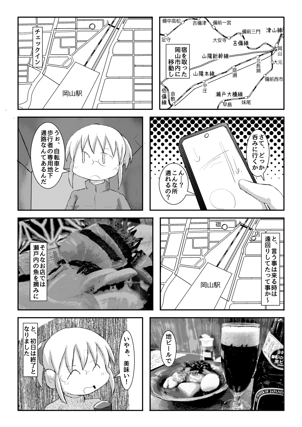 「倉敷アイビースクエア」を堪能し倉敷を離脱。宿のある岡山に戻って瀬戸内の幸を摘みに地ビールを決めてこの日は終了となりました