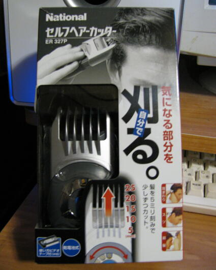 いやぁ、前に日記にも書いた気がするが、馴染の散髪屋が夏頃に閉まってしまって。2回ほど安い理髪店で散髪していたのだが、一々、如何してこうして言うのが結構ウザイので(前の店は馴染みだったので、余りとやかく言わなくても、大体出来上がっていた)、どうせなら「自分で切っちまえ」的なノリで購入。早速、使ってみました・・・、まぁ、若干、虎刈り臭いが(特にもみあげ部分・笑)、自己切りなら仕方がねぇか。初めてにしてはマシな感じに仕上がった気もします。明日、職場で笑われても、所詮「自己整髪」なんで、何となく納得はしそうな気もするしね~。