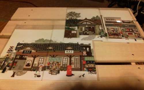 で、写真のハガキ。一番上の谷中「武藤書店」さんの店先で売られていた「街並みはがき」。当方浅学にて知らなかったのですが、山岡進さんと言うデザイナーの方が作って居られる「起こし文」と言う紙製作品だそうで。なかなか粋な作品で1枚315円との事でしたが、第四集の内3枚と販売されている武藤商店さんの「街並みはがき」を躊躇う事無く買わせて頂きました。まだ、立体化させてませんが(汗)。つか、何かが使うのが勿体ないなw。