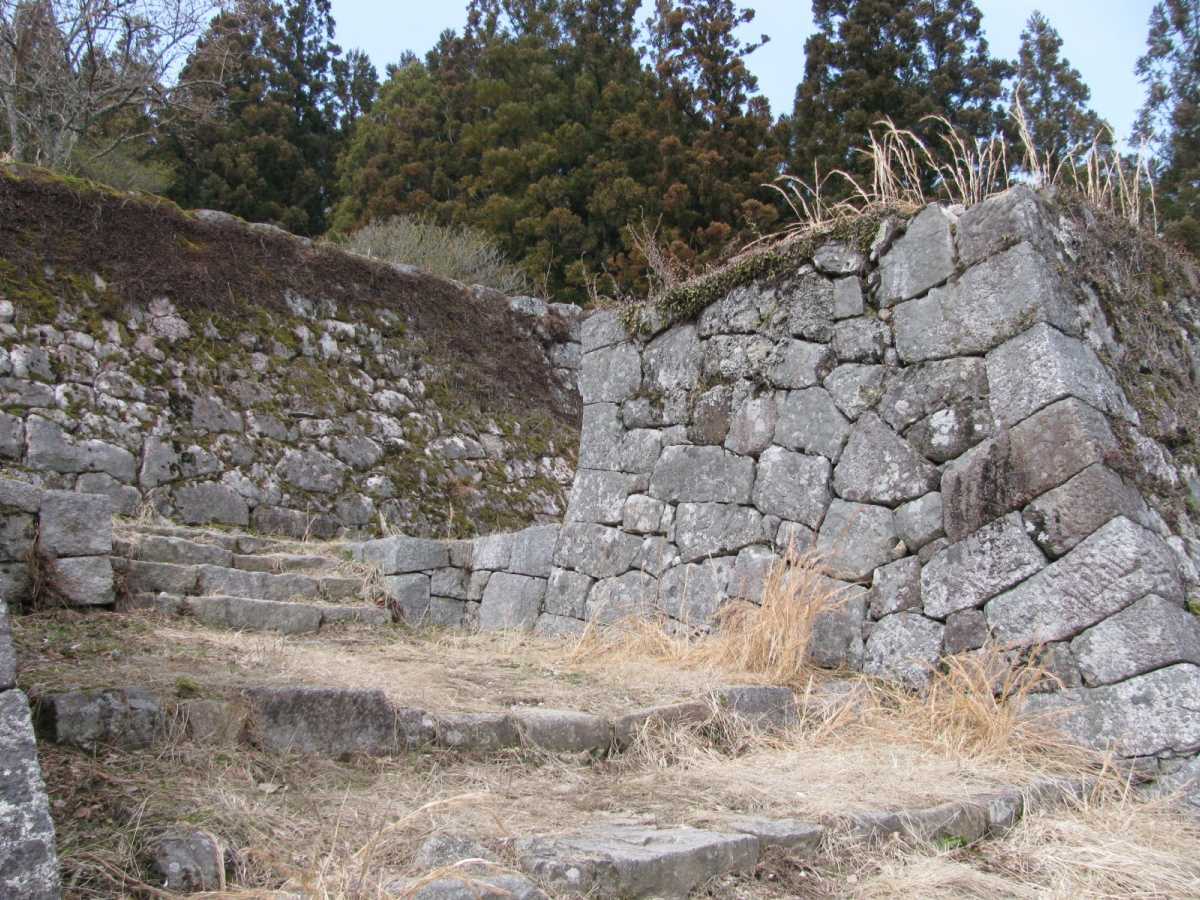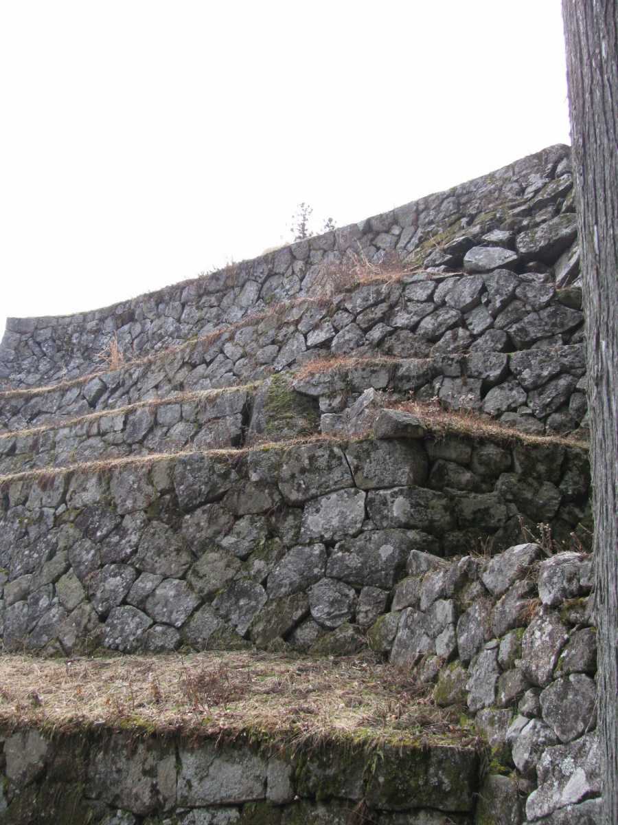 見えてきました本丸虎口石垣(通称「六段壁」)