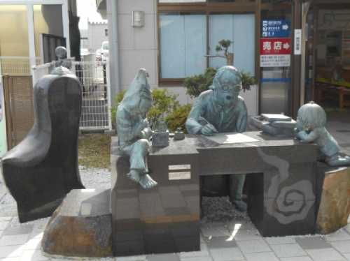 水木しげる記念館があり、細かい資料などが展示してあります。子供の頃に「鬼太郎大百科」とか読みふけっていた様な世代には懐かしいリソグラフの数々で。