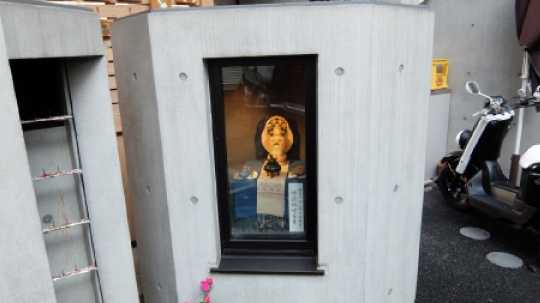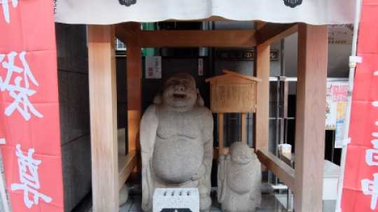 法明寺本堂脇を通って南池袋。中野ビルの一角に鎮座ましまする、布袋様。顔が・・・ねw