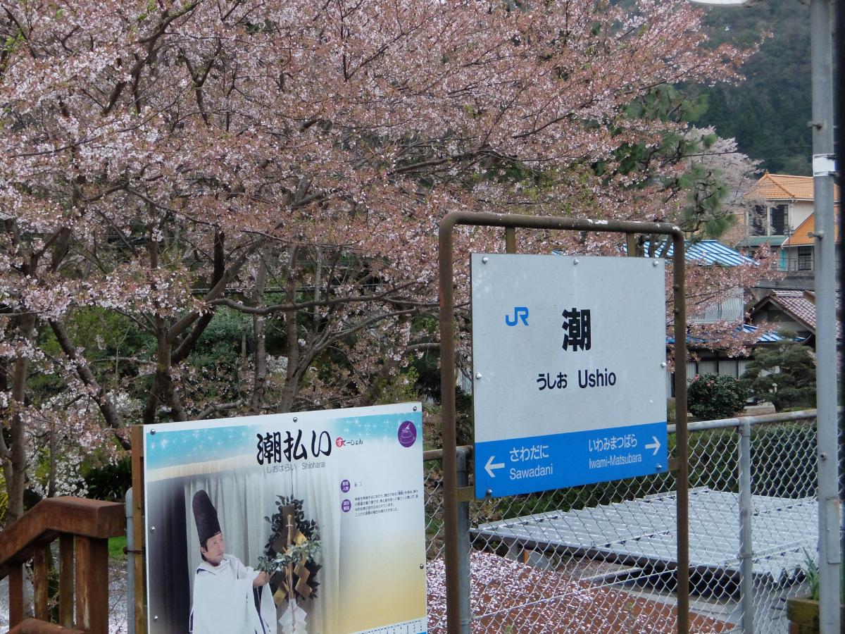 その先の潮(否・艦これ)駅では桜が見事でした。