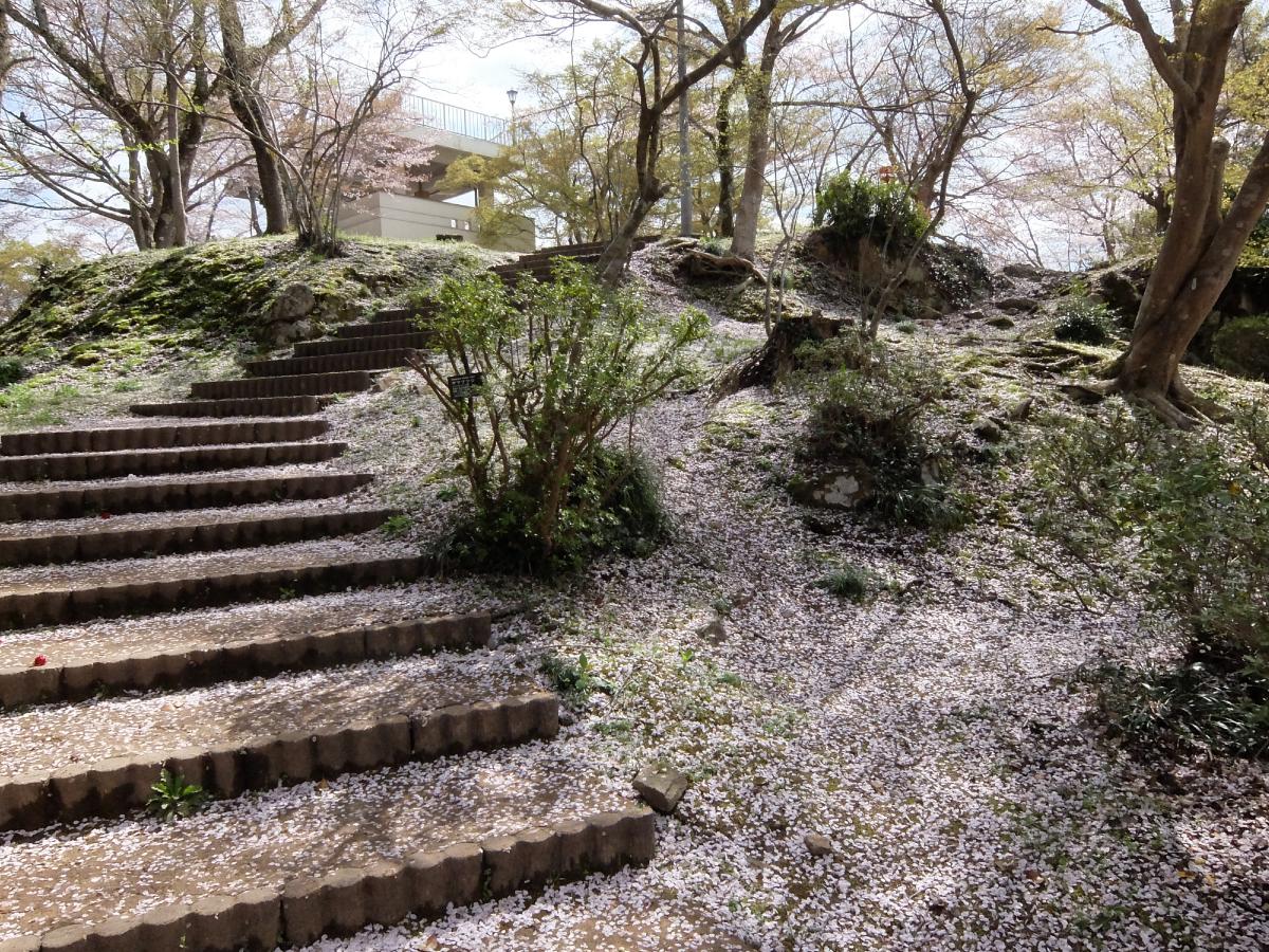 その足で、尾関山公園へ。桜は随分と散ってしまっていましたが、その分を芝桜の様に桜の花弁が一面を覆い尽くしていました。