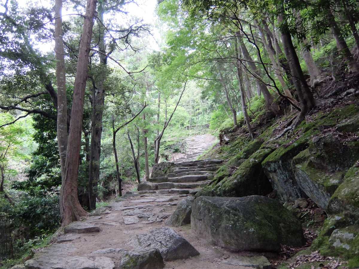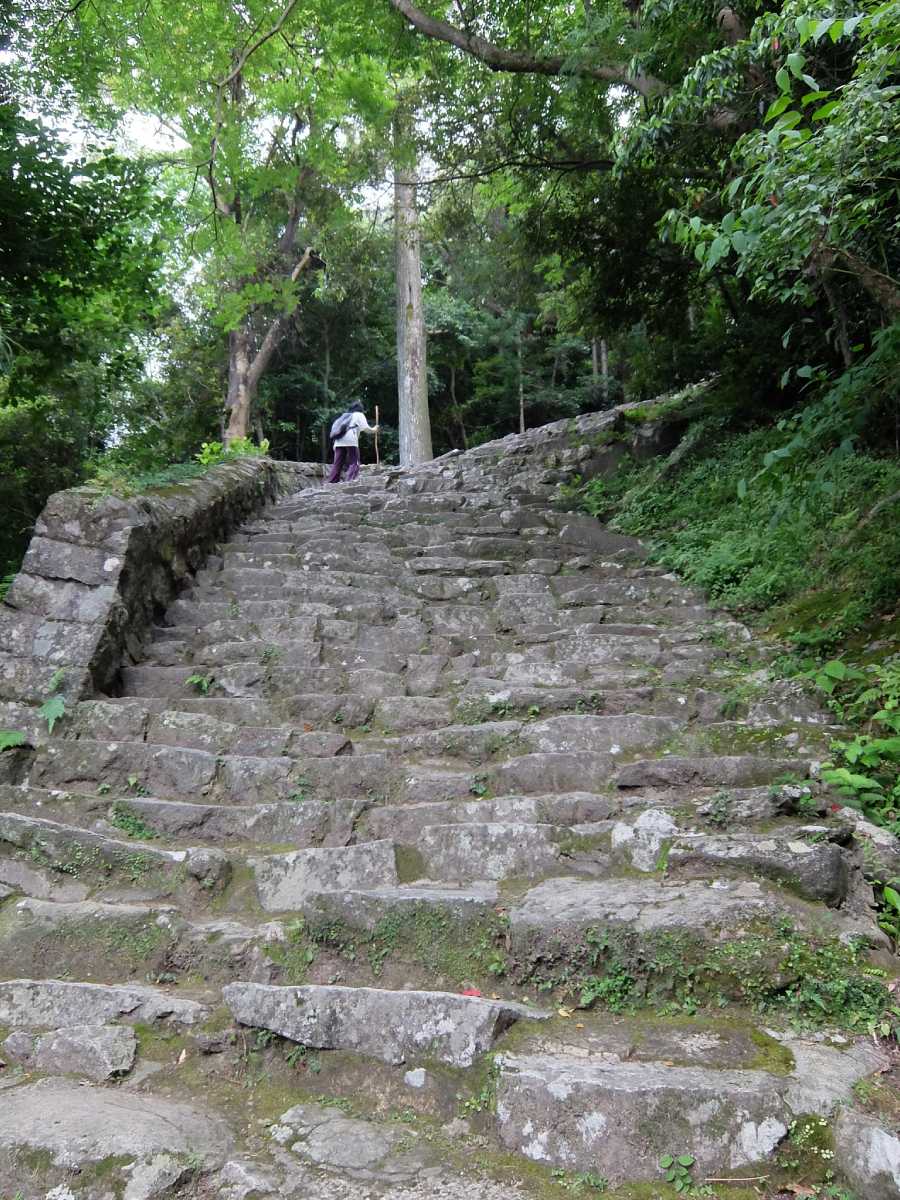 勿論、最初と最後の難関がこの切り立つような鎌倉積みの石段です。一段一段が高く不揃いな為、結構きついです、が頑張って登りましょう。