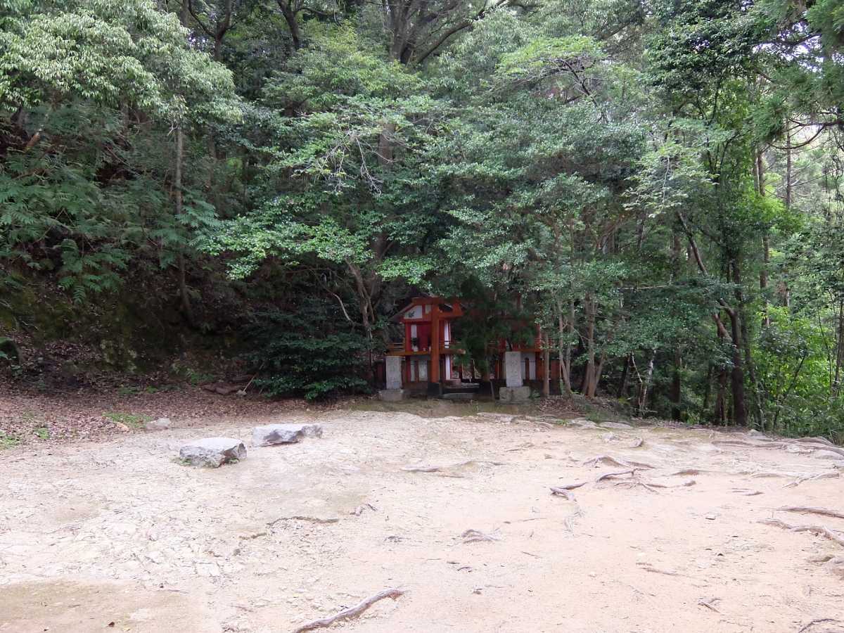 途中の火神社の所まで来るとひと段落。此処から先の石段は、その前に比べると随分傾斜も緩いので比較的楽です。