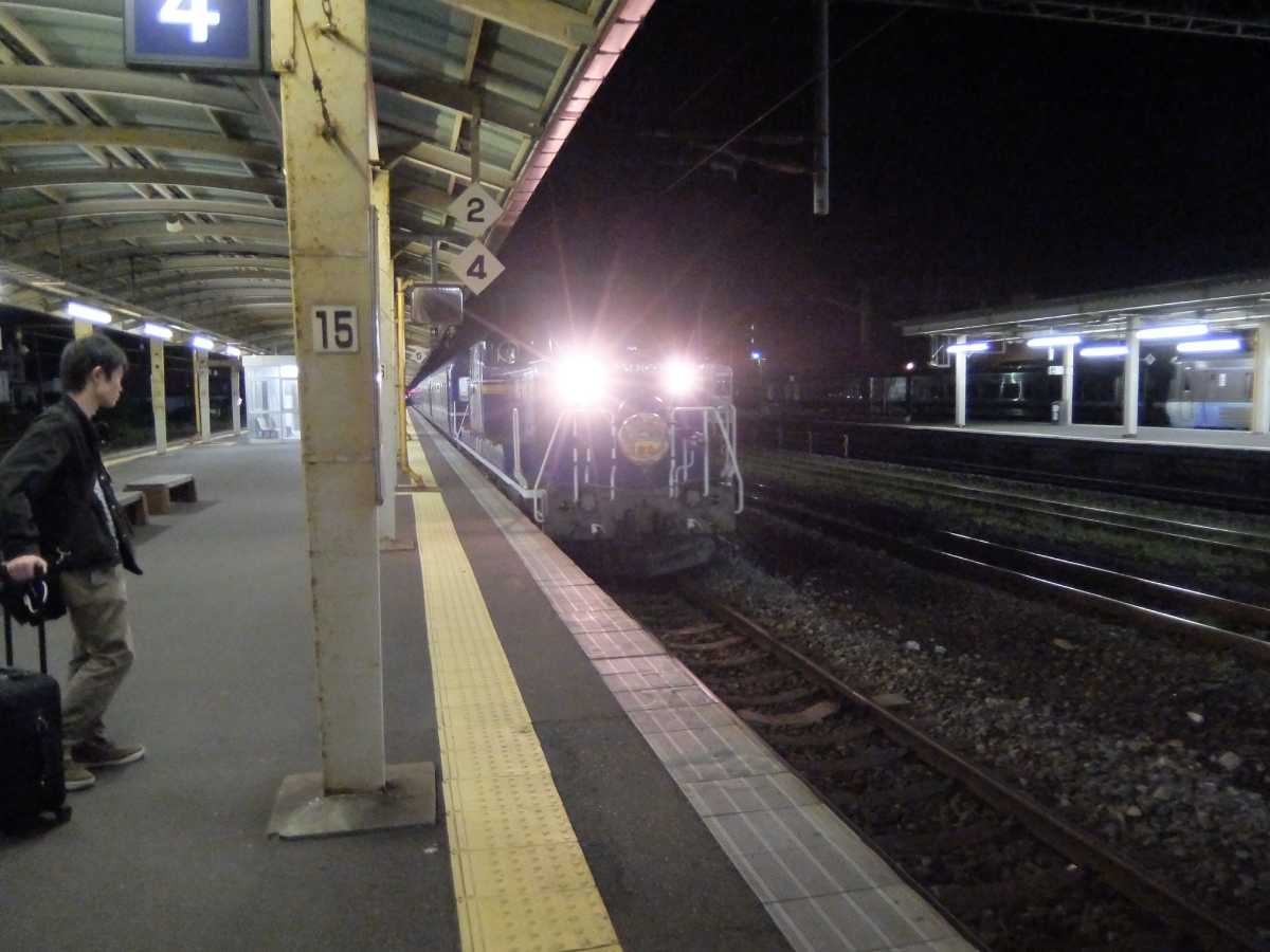 東室蘭駅は23:52発着。青いDD51牽引です。