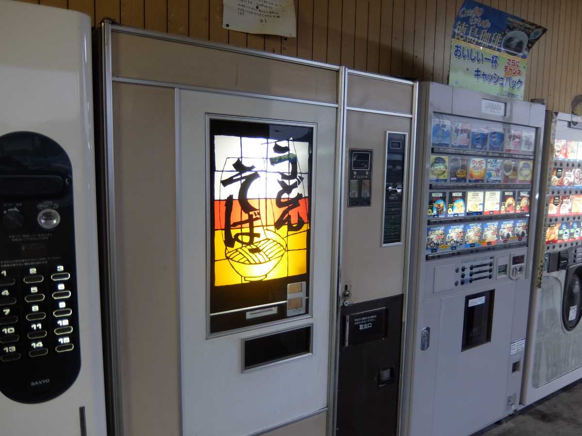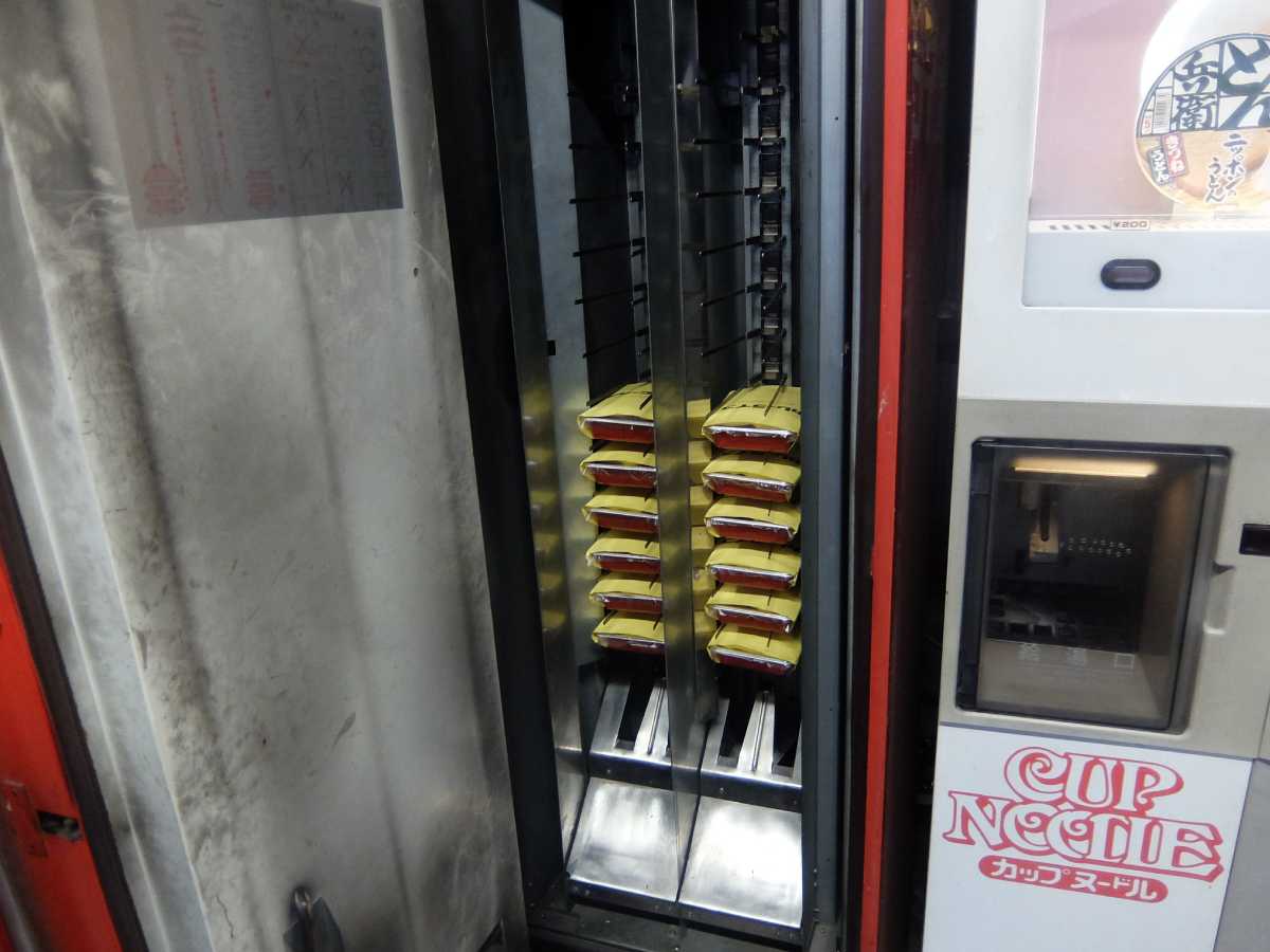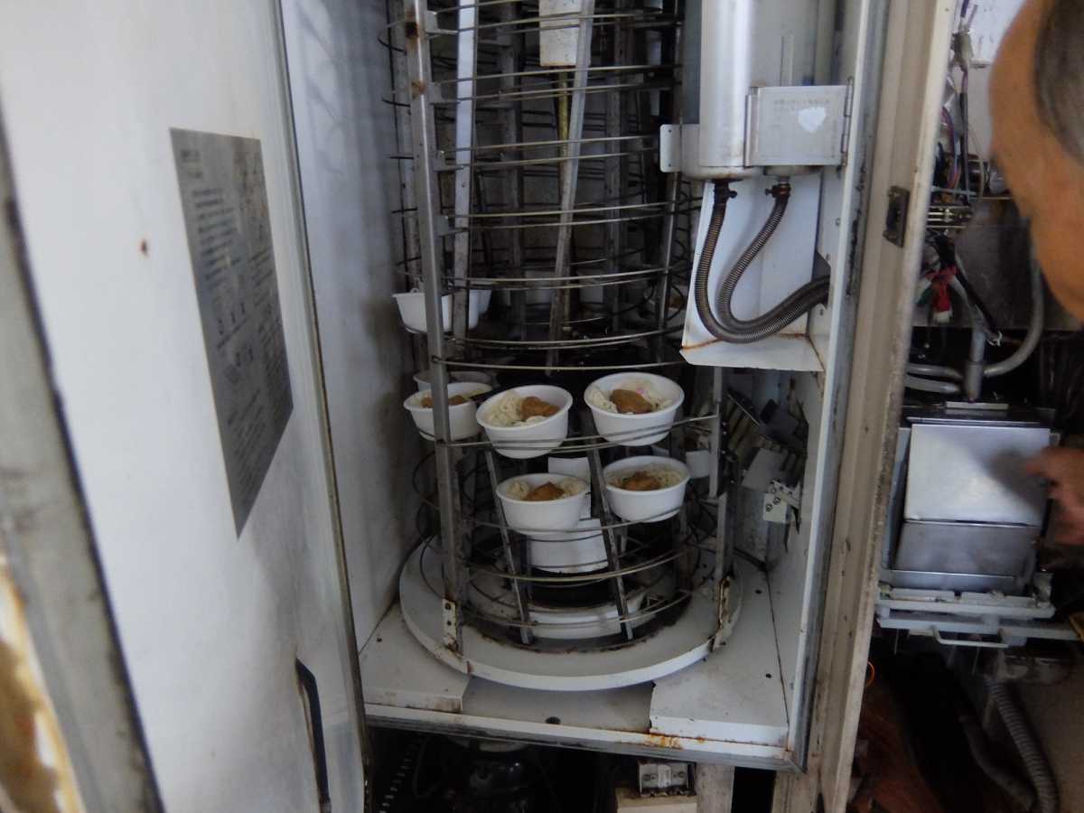 さ、更にはお店の人のご厚意でボンカレー自販機&うどん自販機の中まで見せて頂きました。