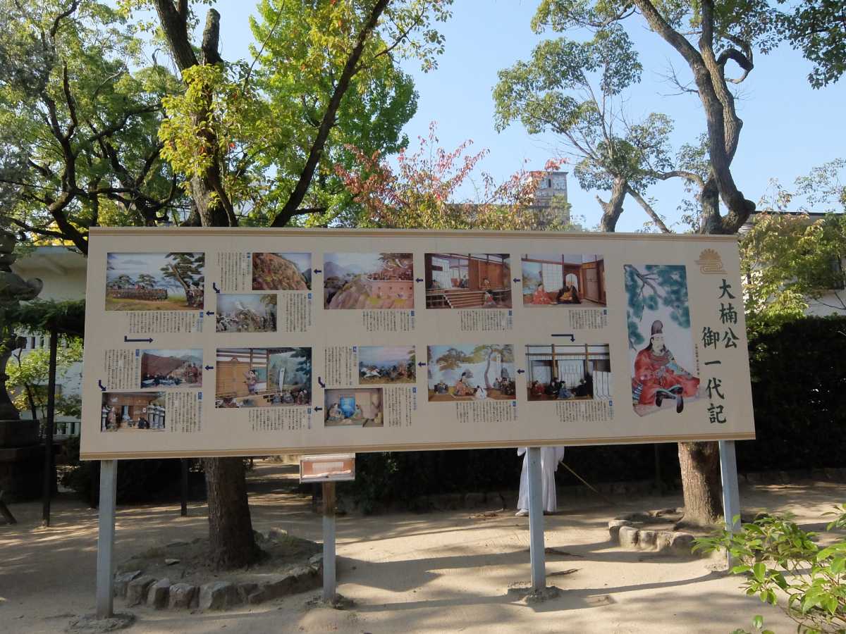 ご存知楠木正成を祀る神社。門を潜ると正成の一生を書いたパネルがある話ですが、残念なオタクなので