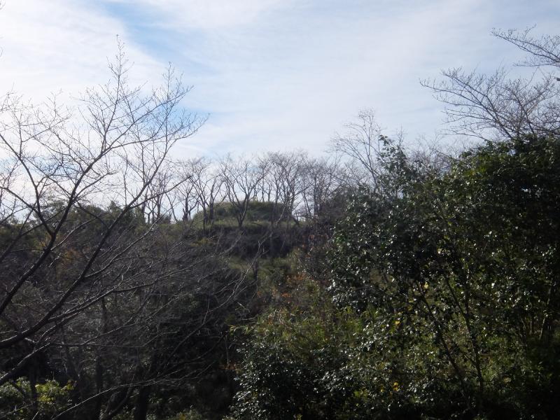 西の丸側から本丸側を見ます。左側の高くなって居る所が本丸。