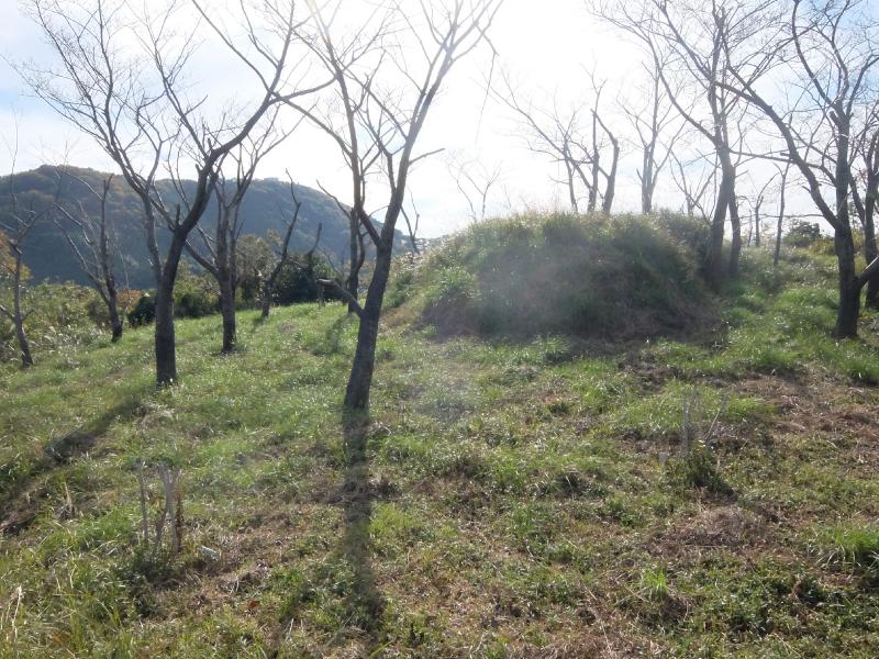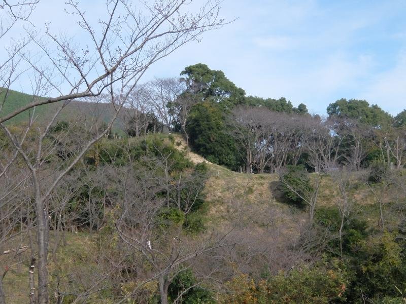 本丸側から見ると、西の丸の土盛が盛り上がっているのが見えます。
