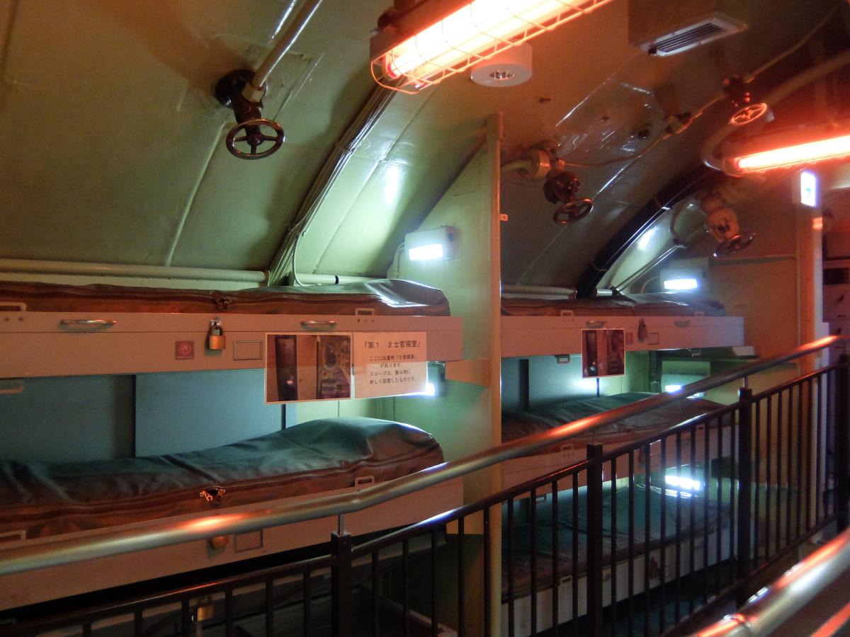 激狭な3段ベッド(1・2等士官寝室)