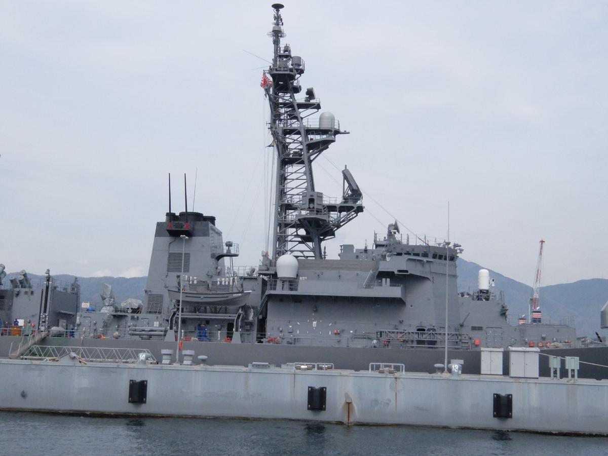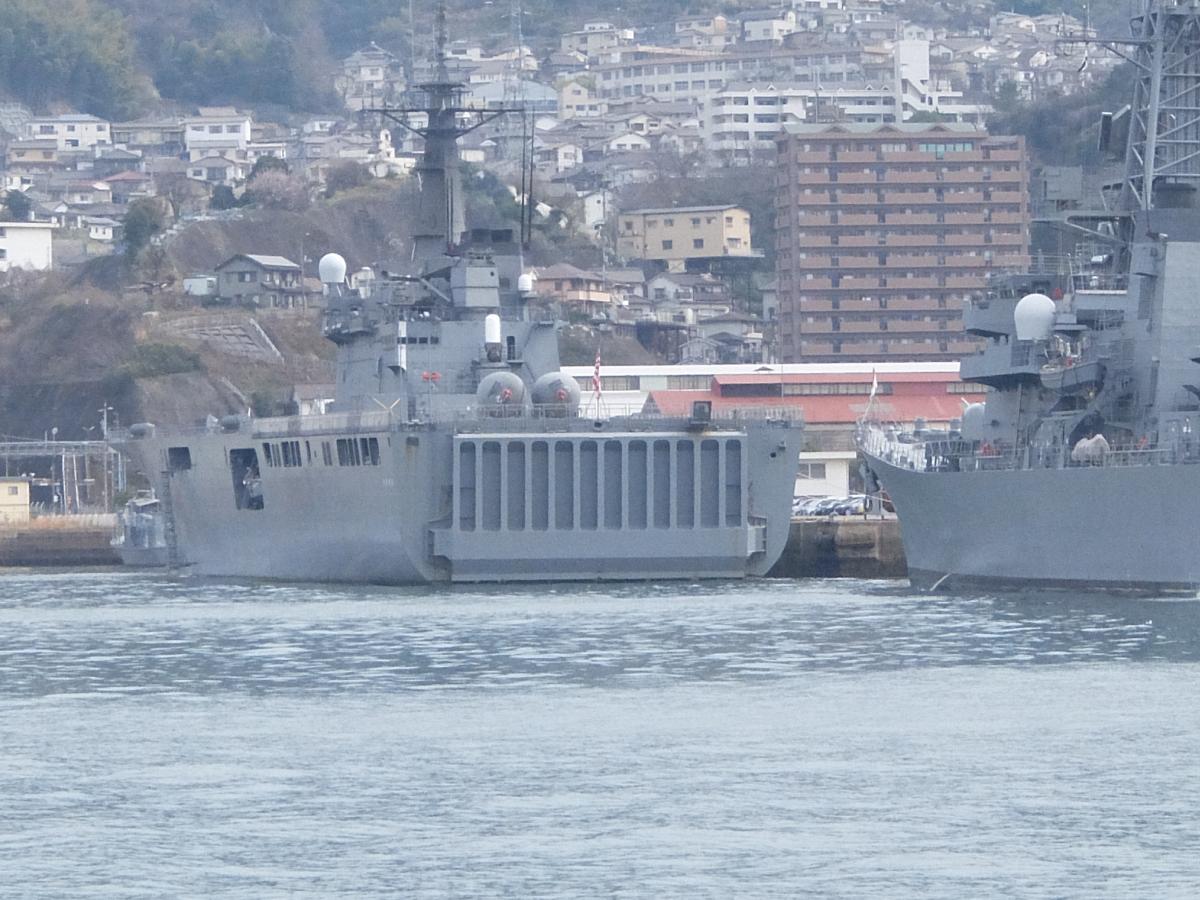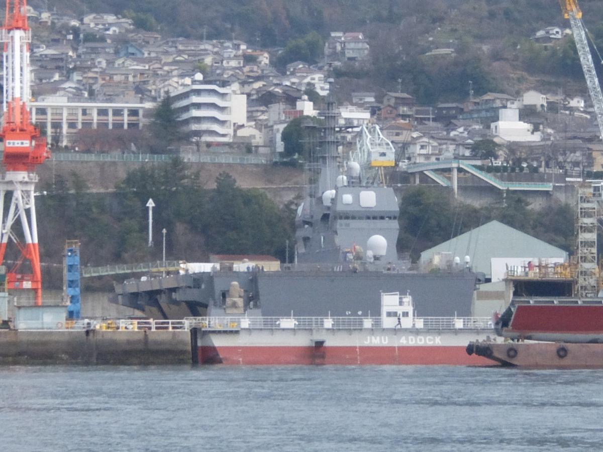 で、奥のドックにいるのが「かが」と入れ替わる直前の「いせ」だと思われます(CバンドとXバンドレーダーの形状とかからして)。