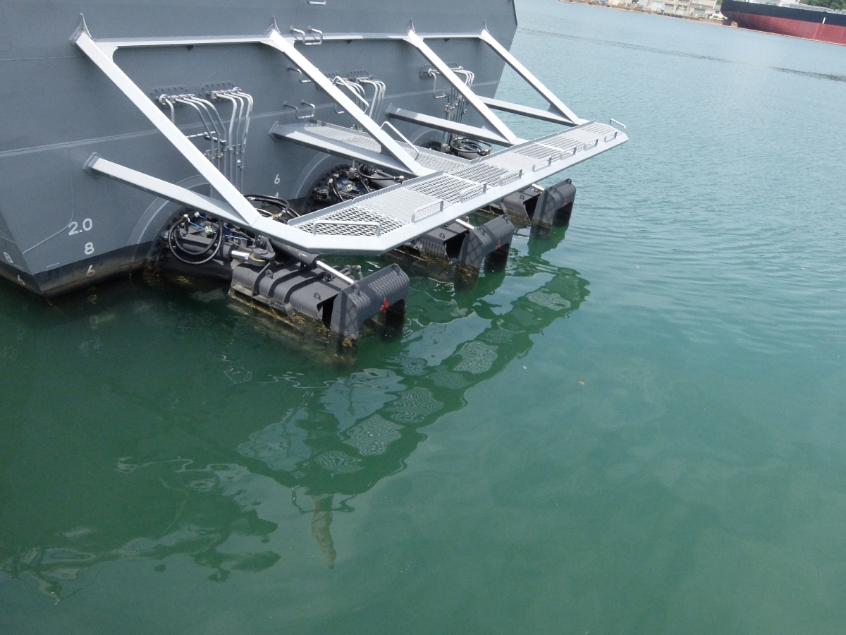 やっぱり見どころは船体中央の潜水艦救助用の設備でしょう。