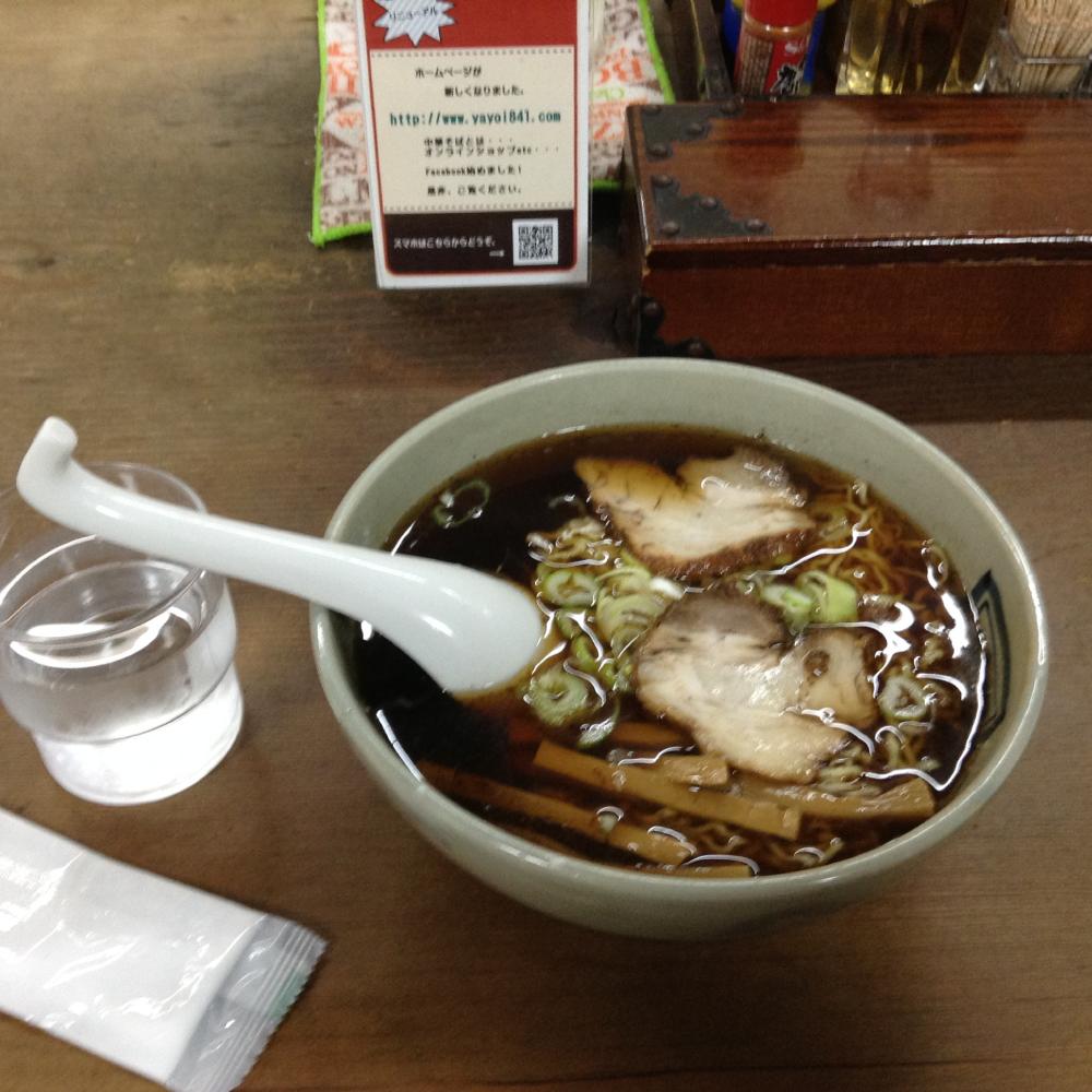 カツオ出汁の利いた醤油ベースの中華そばは昨今の濃い味を考えると懐かしい味。特徴は縮れ麺。いやぁ、美味かった美味かった。