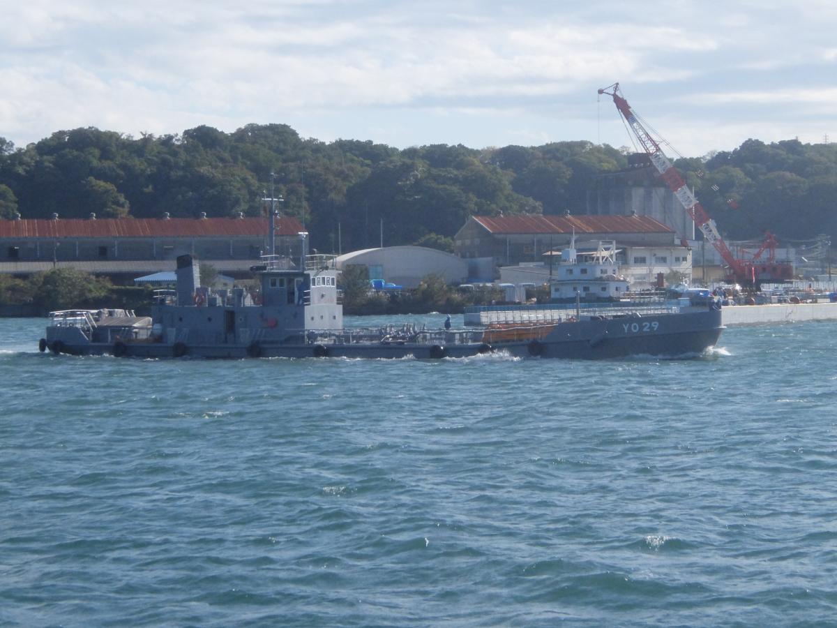 前から給油用の支援船が進んできます。「YO」は重油を指すそうで。因みにこの船は「油船25号型」の「油船29号」