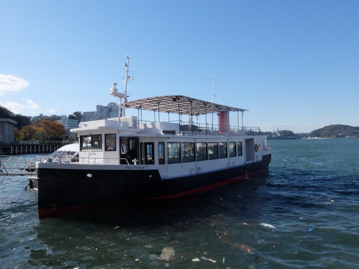 軍港めぐりは廃艦となった「はちじょう」の横を抜け、新井掘割水路へ。