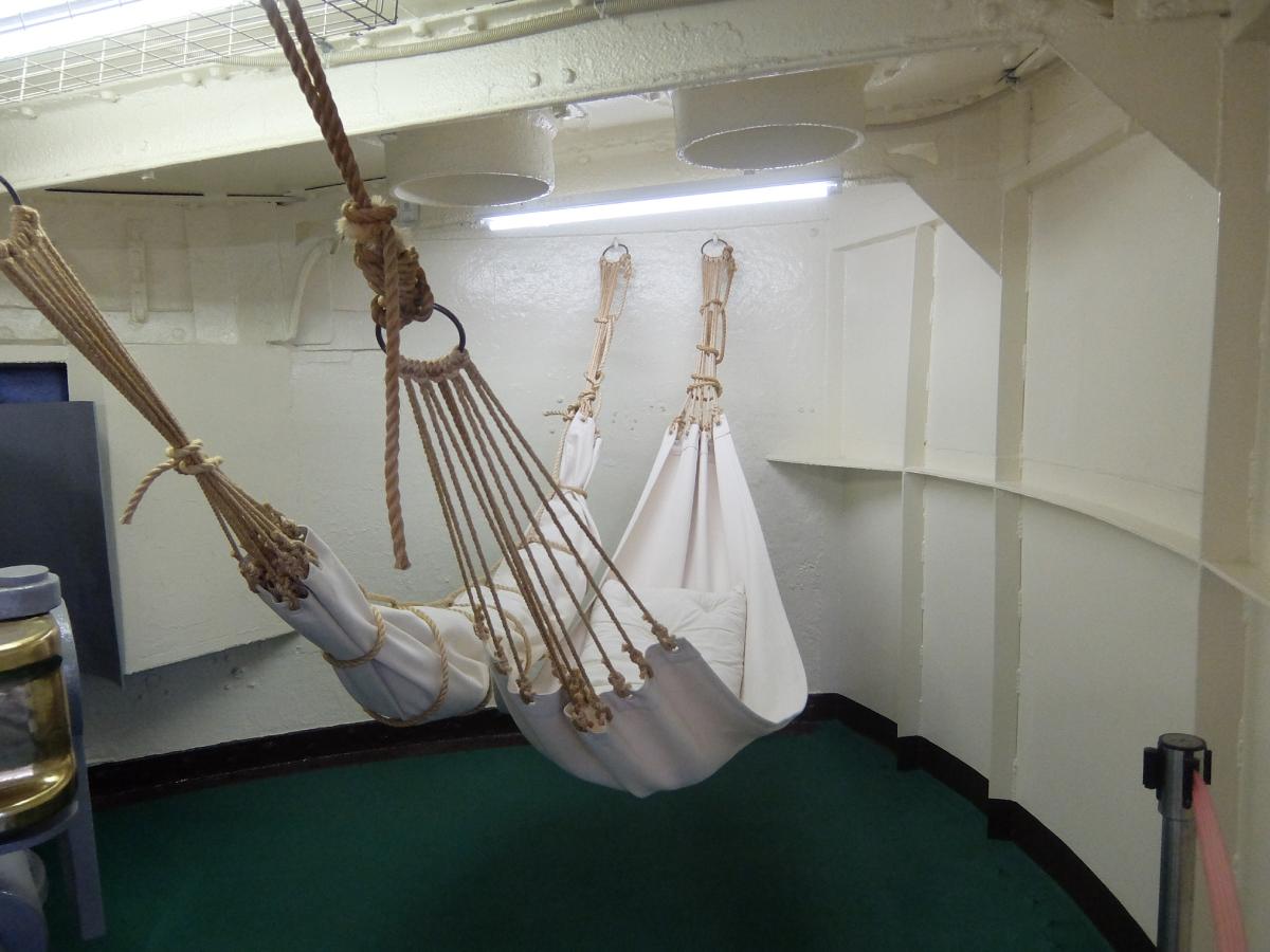 後、砲塔室には就寝用のハンモックも釣ってありました。