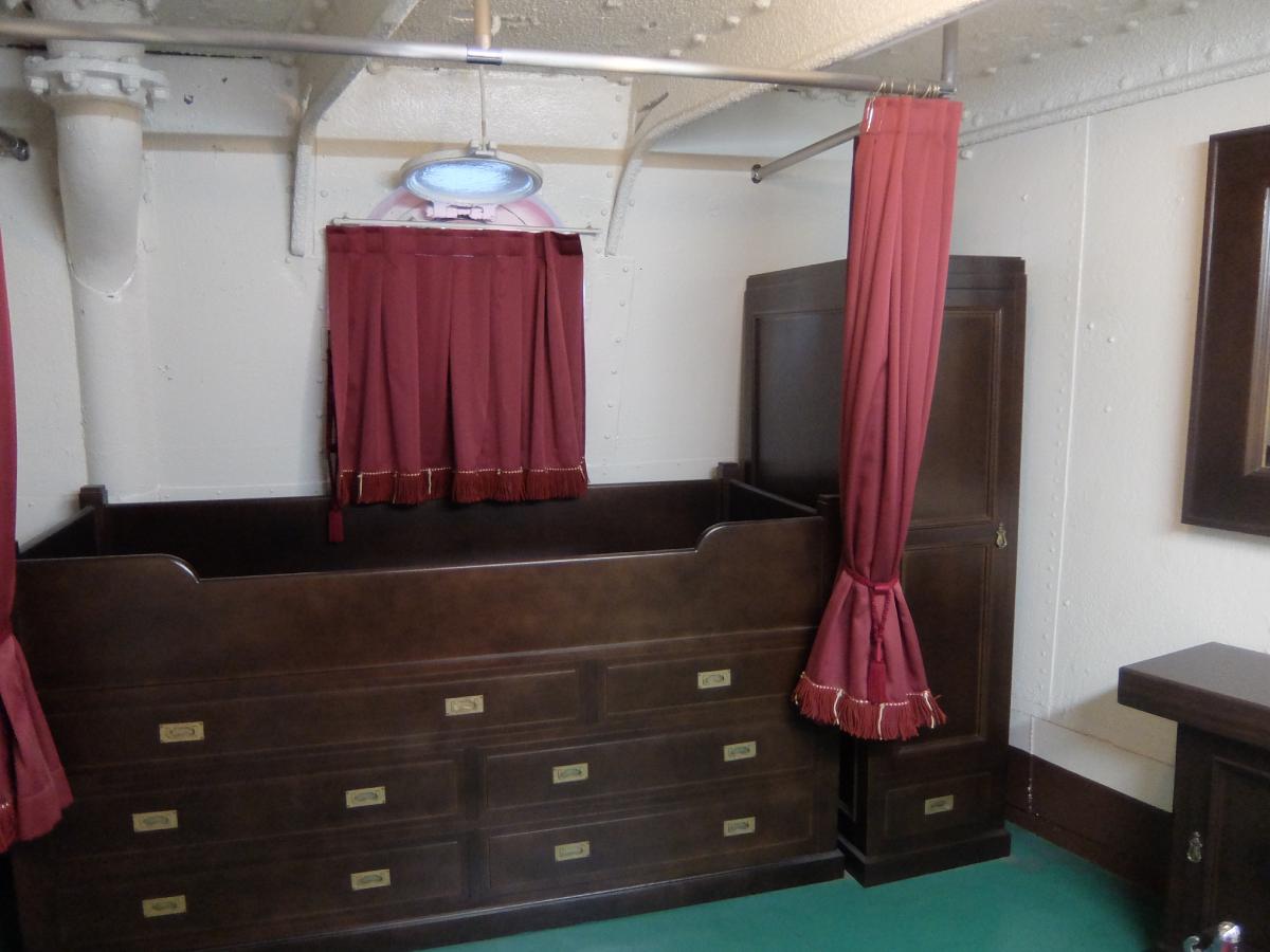 艦橋から降り、後部環境などもぐるっと回って船内へ。船内後部は当時の司令官室なんかが再現されて居ます。