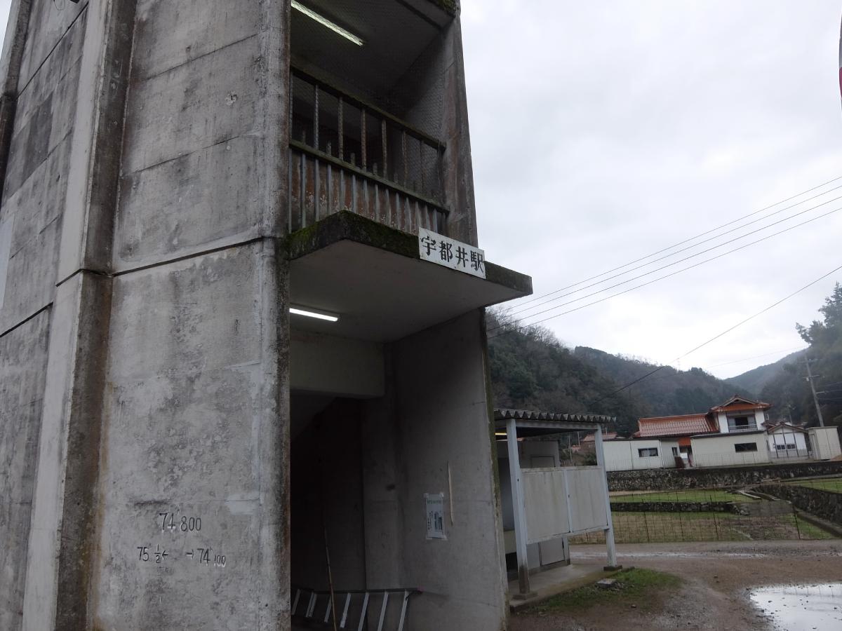 この第三橋梁を潜った先、左側に橋が見えますので、この橋を渡って右折する左手に宇都井駅が見えてきます。