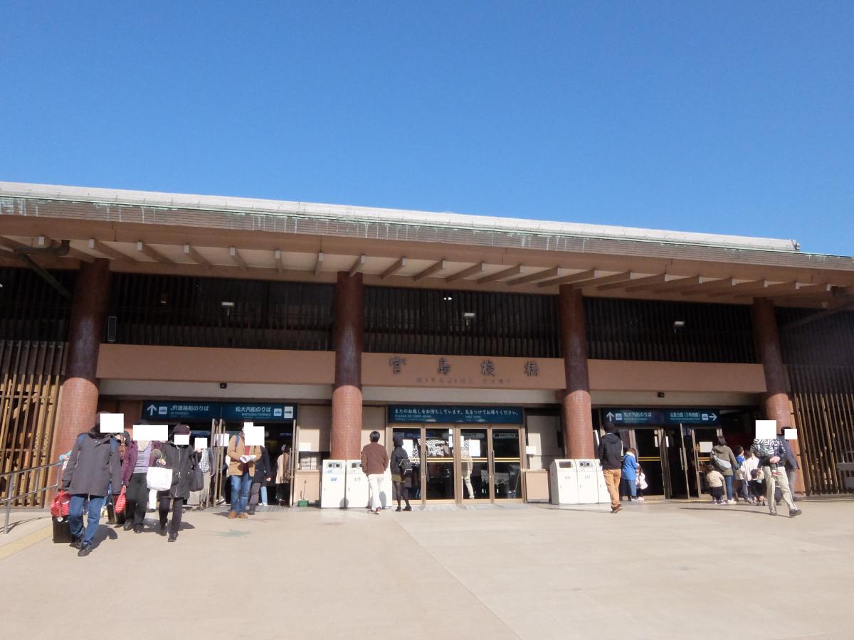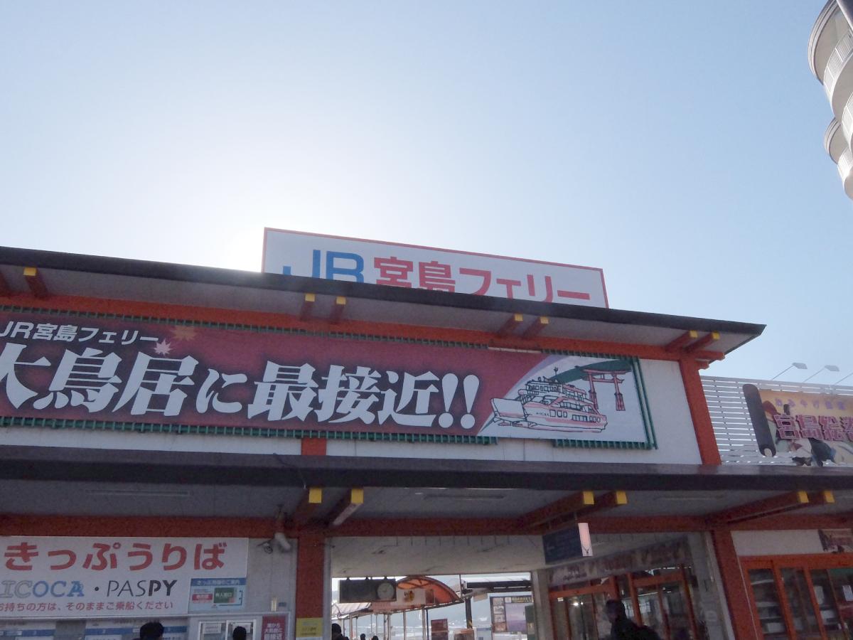 準備が整ったので、歩いて2~3分程のJR宮島フェリー乗り場へ~。書いてある様に8時台の便から厳島神社の大鳥居に最接近してくれます。